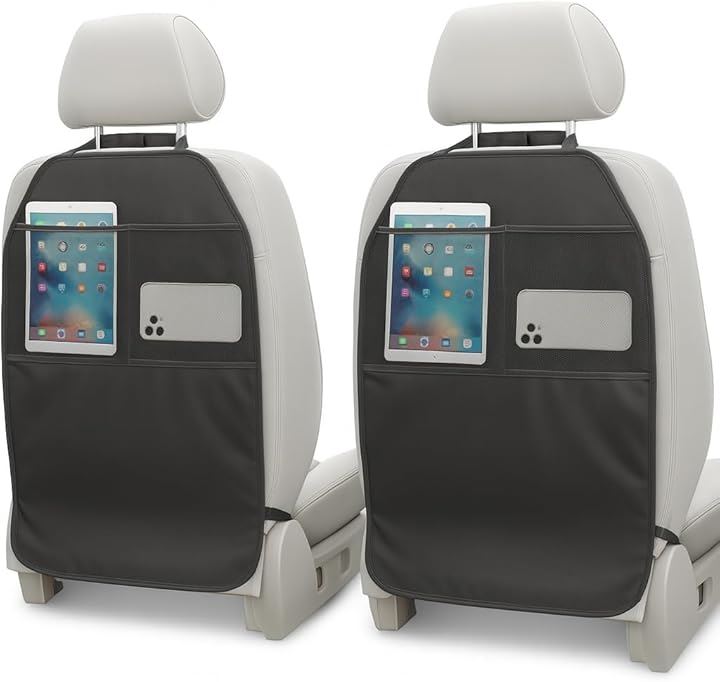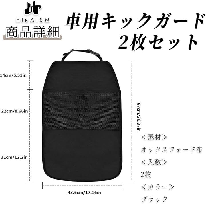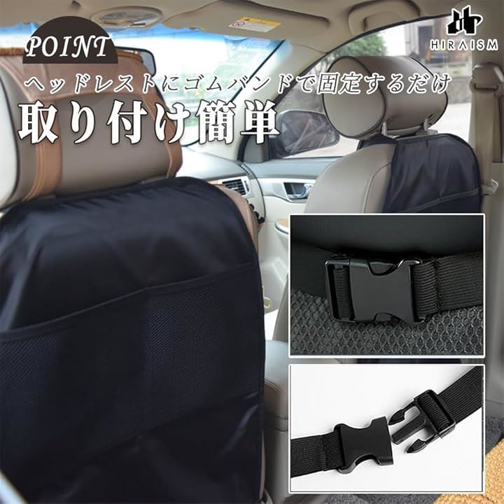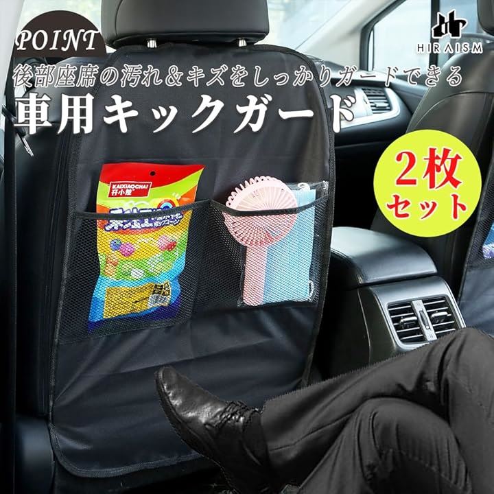 キックガード 車 シートバックポケット 防水 汚れ防止 シートカバー 小物収納 ポケット付き 2枚セット