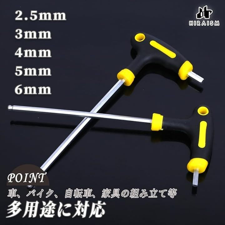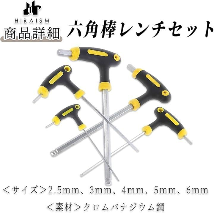 六角棒レンチ T型 ロングボールポイント 2.5mm 3mm 4mm 6mm 5本セット