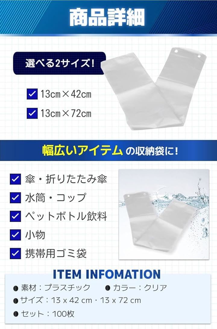 傘袋 ビニール 傘入れ 傘用 収納 業務用 家庭用 破れにくい 100枚セット
