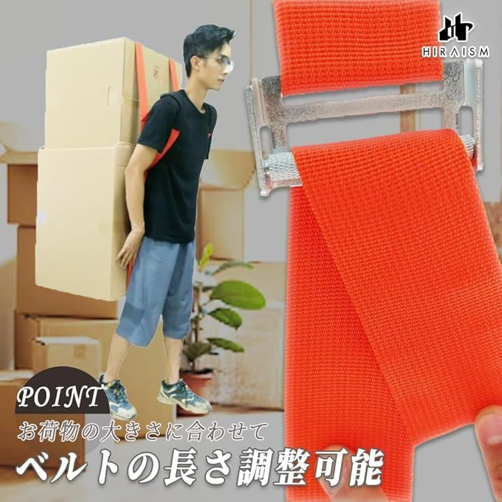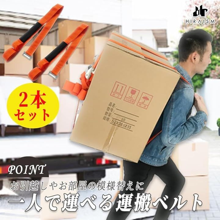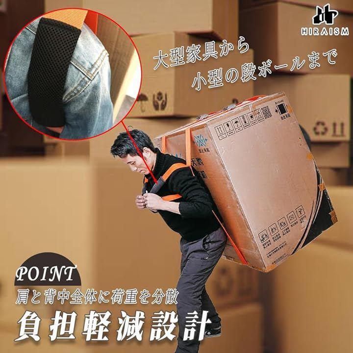 運搬ベルト 背負い式 左右2本セット 一人用 大型家具 家電 段ボール 持ち上げサポート 長さ調節可