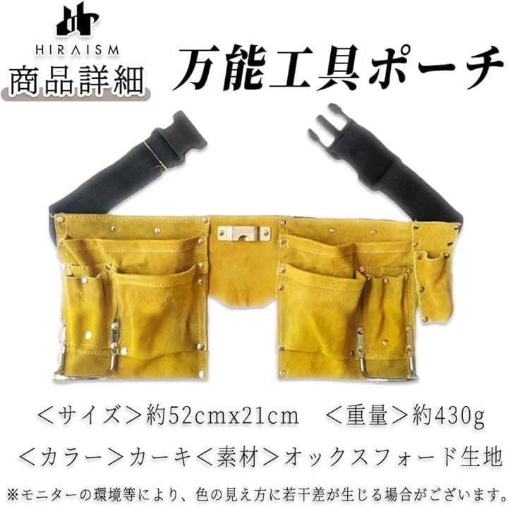 工具ポーチ 多機能 腰袋 工具入れ 本革製 大容量 電工 大工作業用 調整可能ベルト