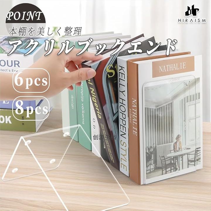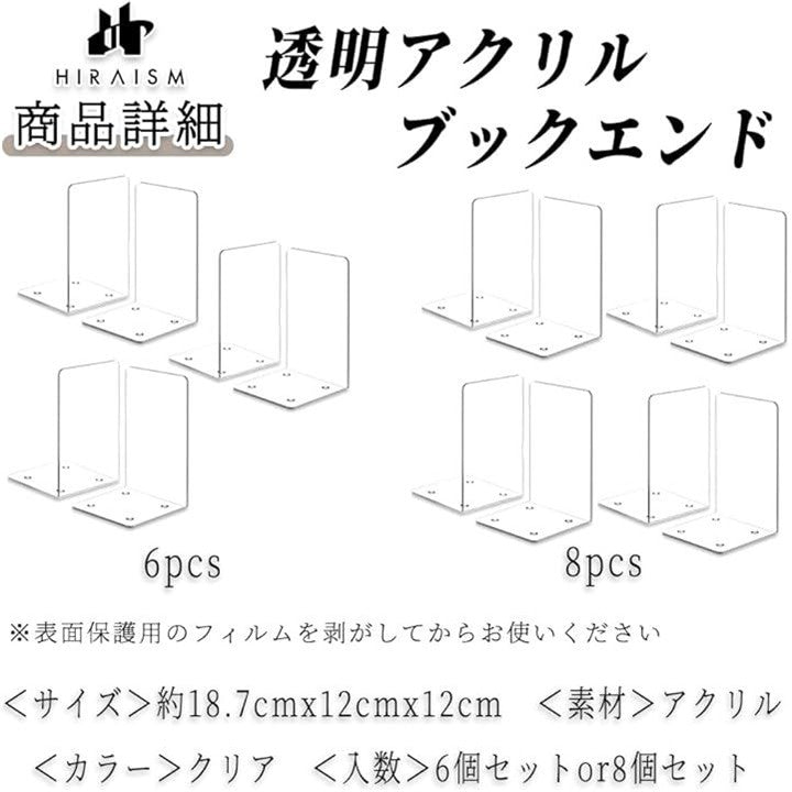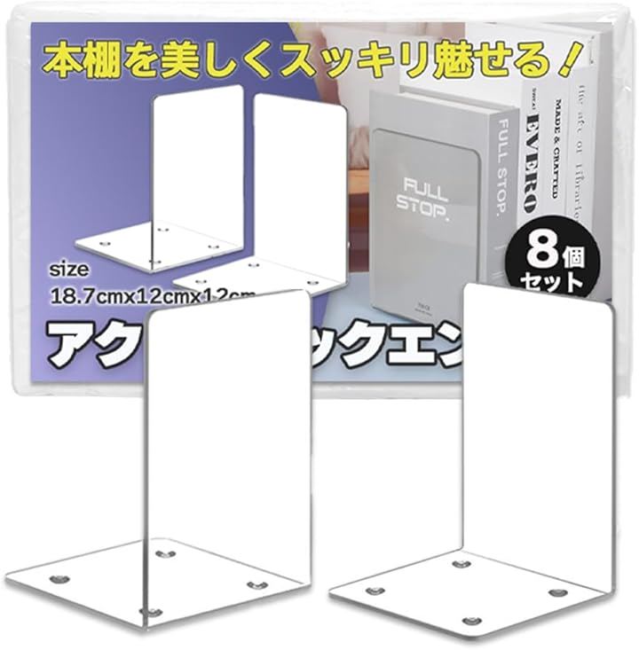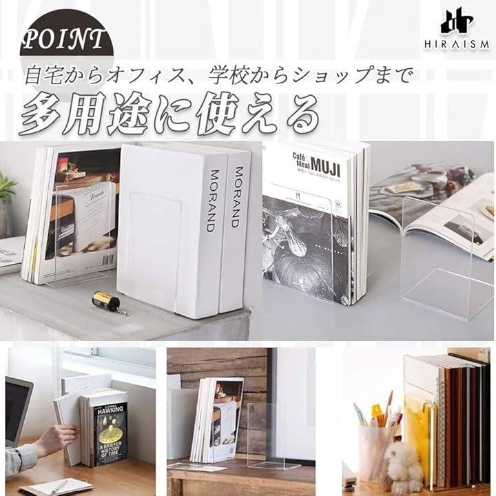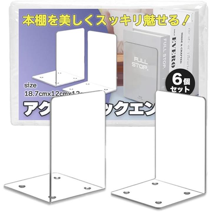 ブックエンド アクリル ミニ 透明 本 雑誌 ファイル 整理 おしゃれ 収納 ディスプレイ L字型