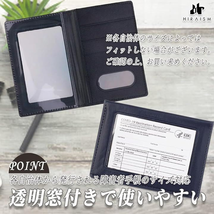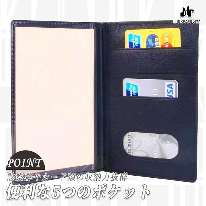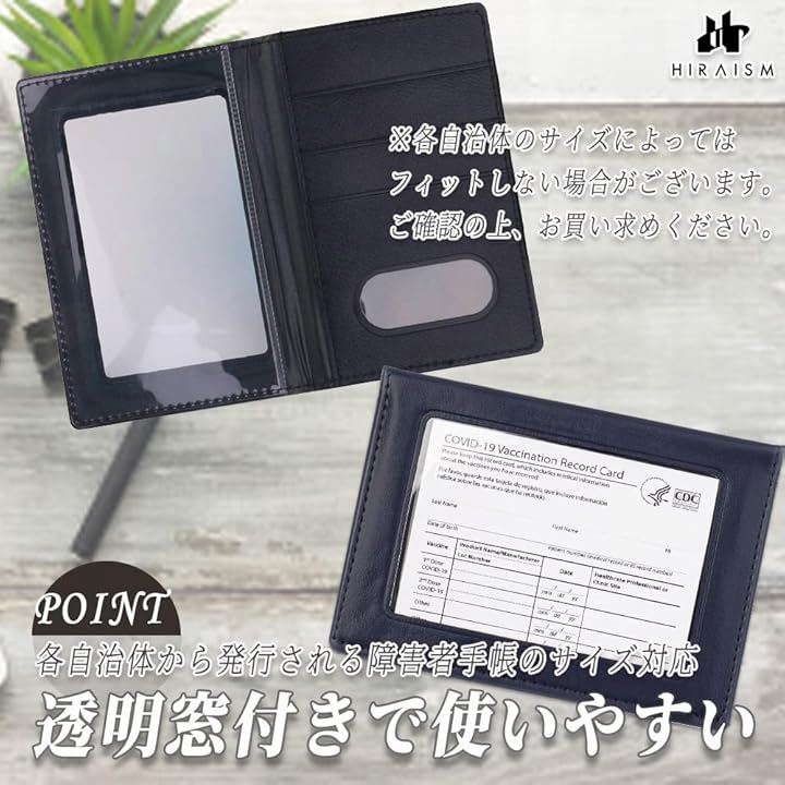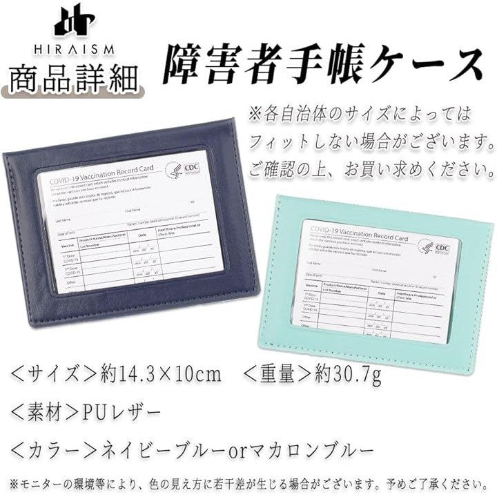 障害者手帳ケース パスカバー 薄型 折りたたみ式 PUレザー カード収納 5ポケット付き