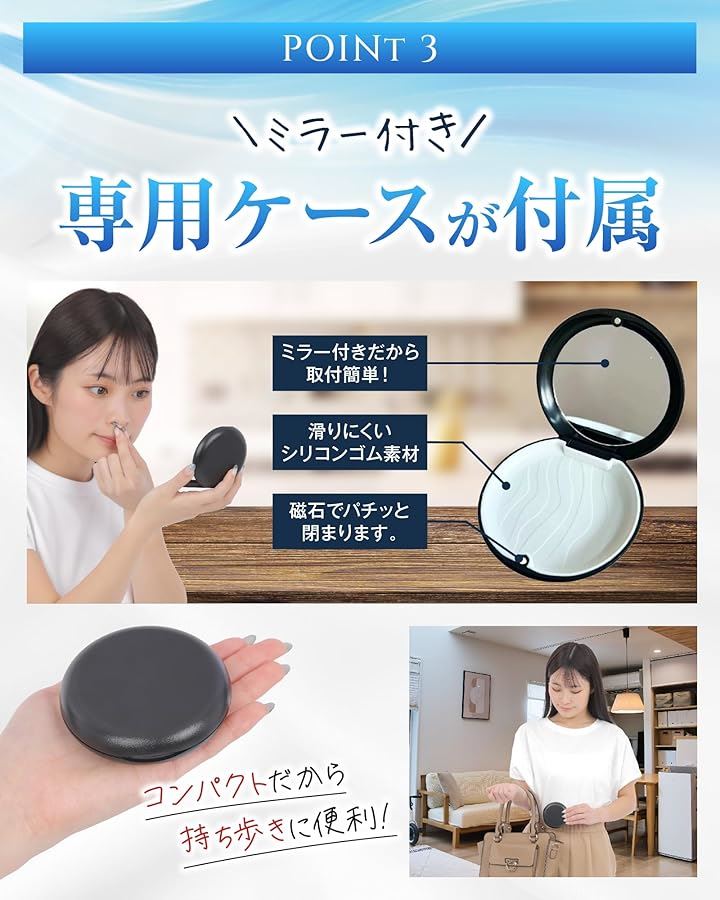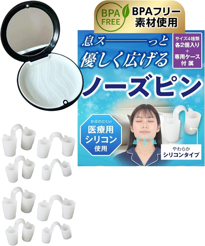 ノーズピン BPAフリー素材 鏡付き専用ケース付属 鼻孔拡張 柔らかいシリコンタイプ 8個 各サイズ4種x各2個入