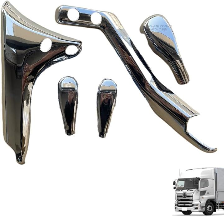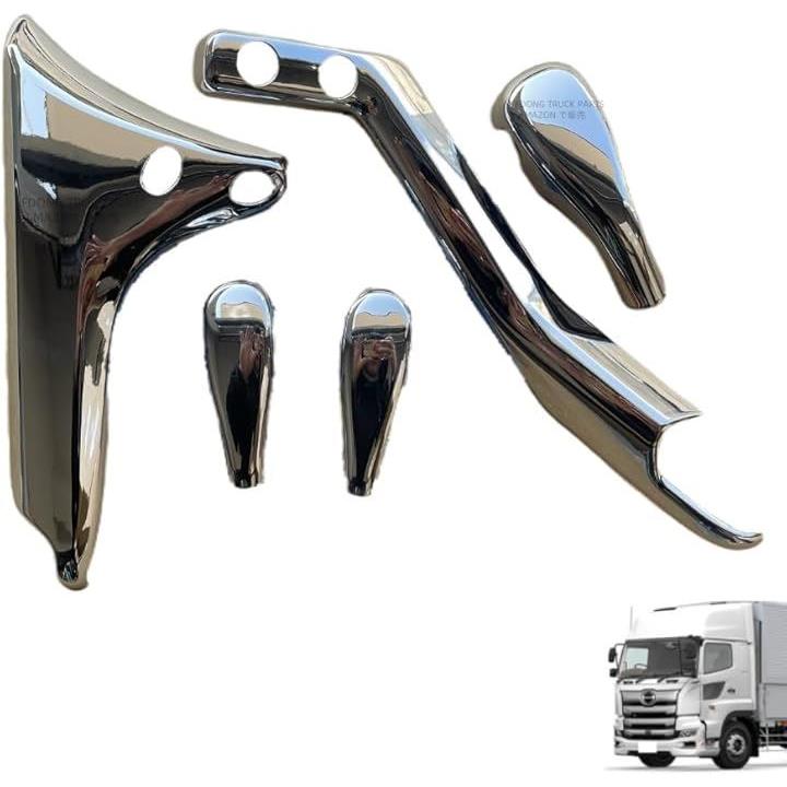 互換品 日野 17プロフィア H29.5~ メッキ ミラーステー カバー 電動リモコンミラー車用 5点セット デコトラ トラックメッキパーツ