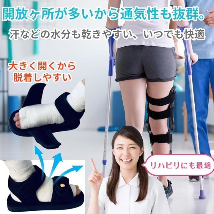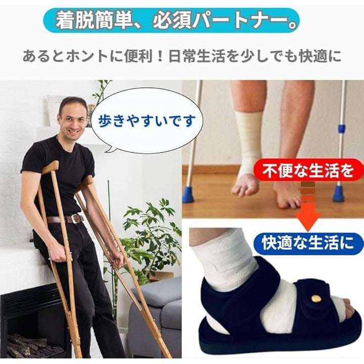 骨折 サンダル ギプスシューズ 足 靴 介護シューズ リハビリ 片足 左右兼用 調整可能 松葉杖