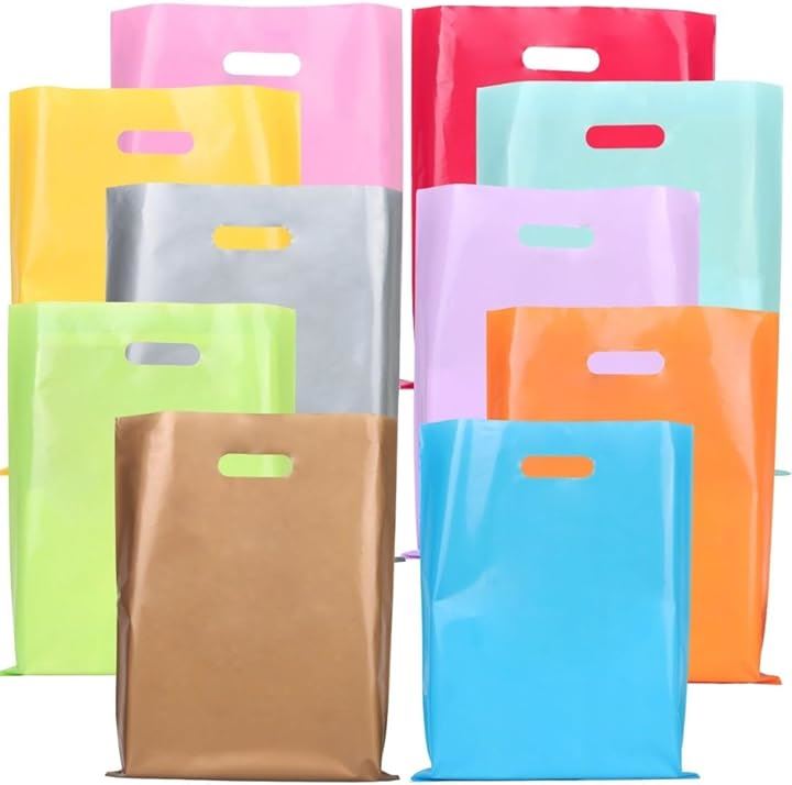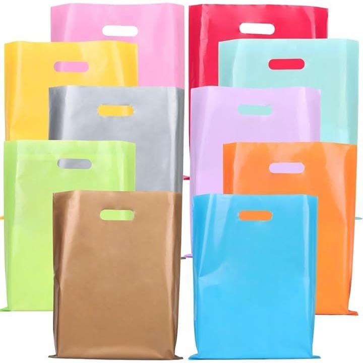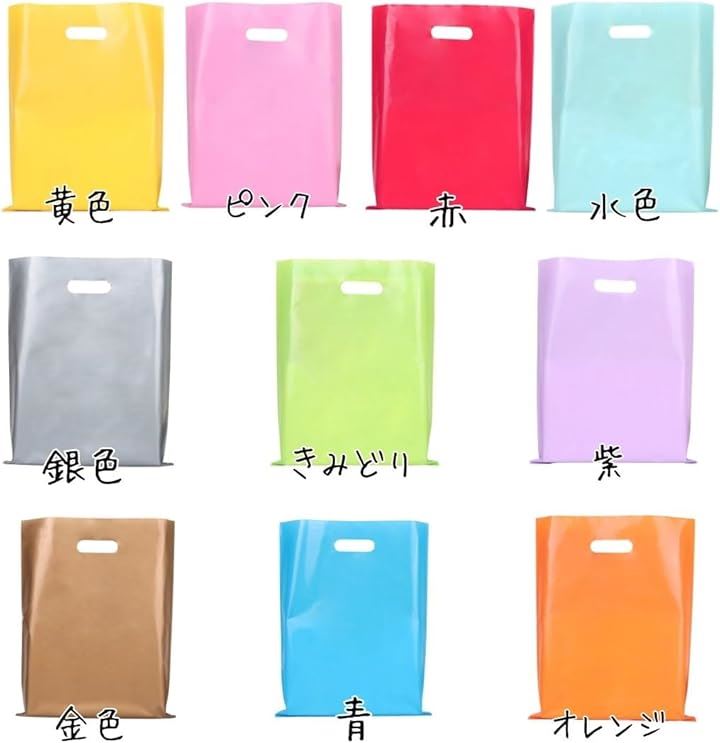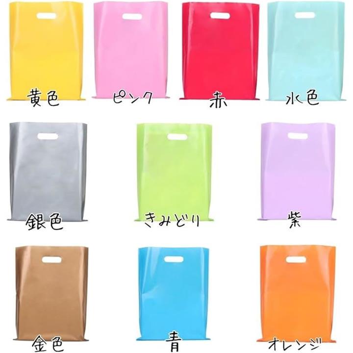 カラフル ビニール袋 ショップバッグ ギフトバッグ 小判抜き 手提げ 25cmx35cm 10色 100枚セット A
