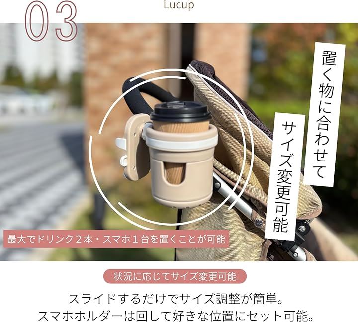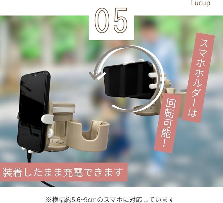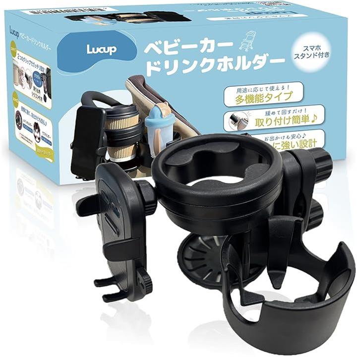 ベビーカードリンクホルダー 2点で固定 スマホホルダー付き 多機能 360°回転 高耐久耐水