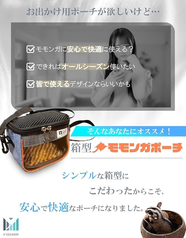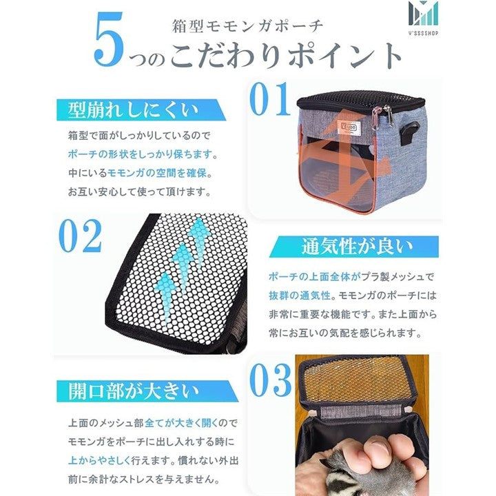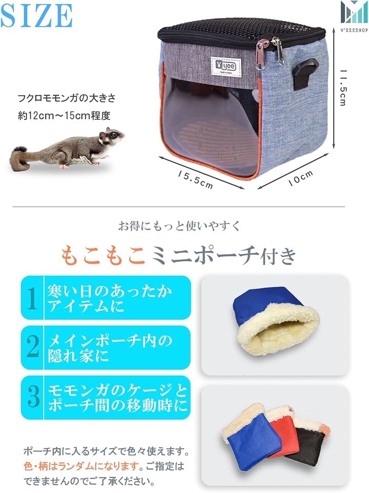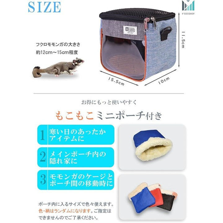 シンプルがベスト。 モモンガ フクロモモンガ お出かけ用 ポーチ ミニポーチ付き ハムスター ハリネズミ