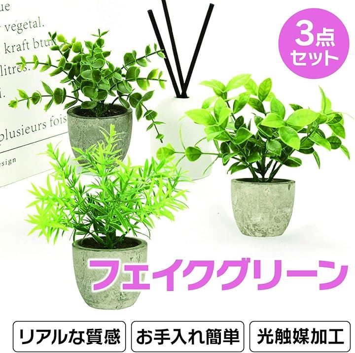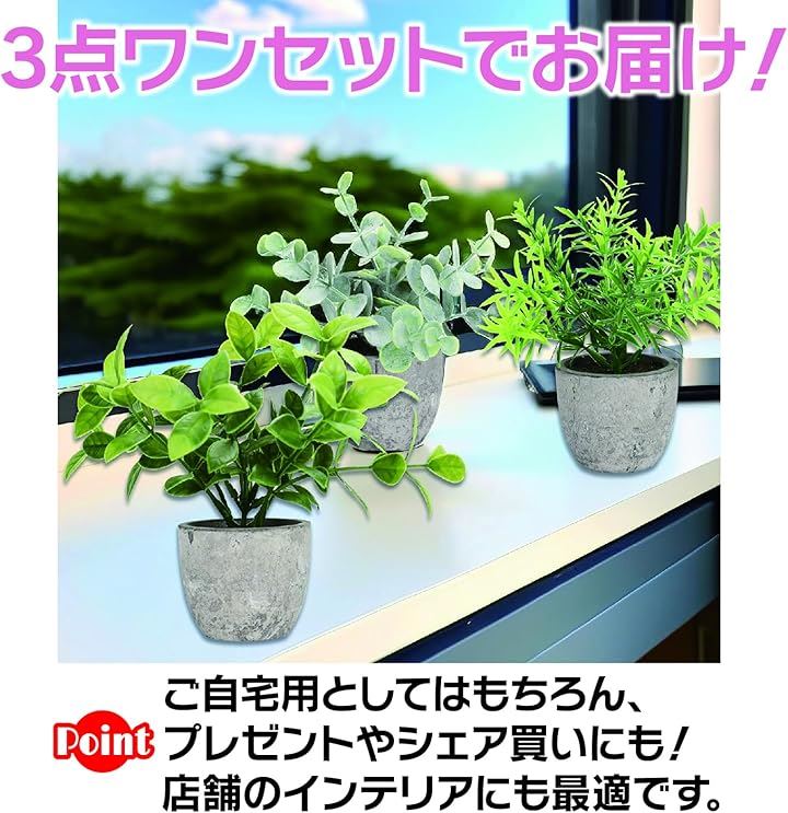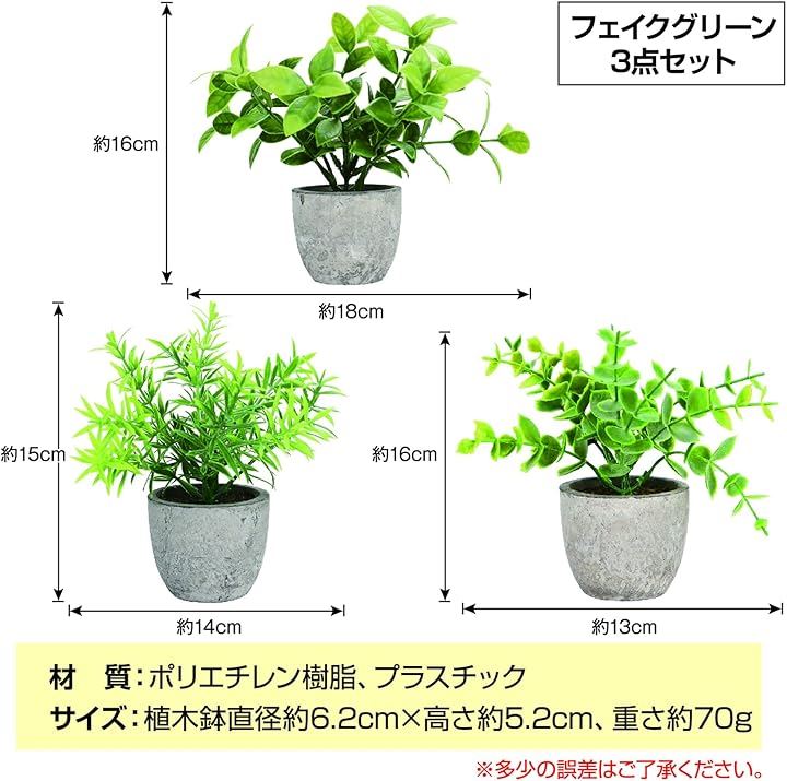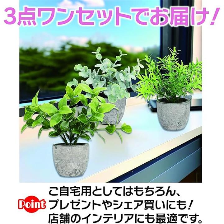 フェイクグリーン 人工観葉植物 ミニ 鉢植え 3点セット 卓上用 インテリア雑貨