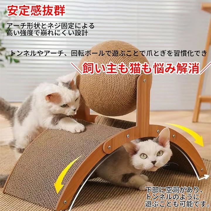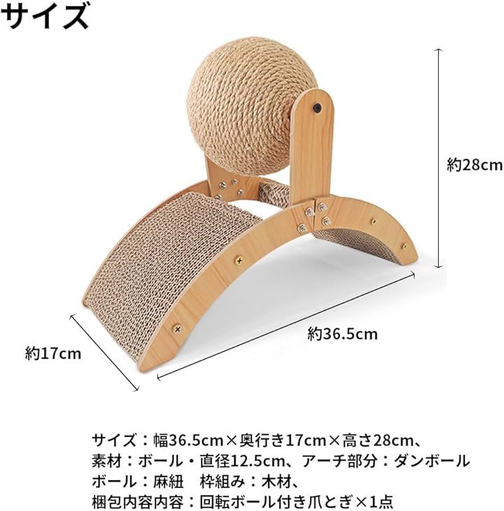 猫用爪研ぎ 回転ボール付 ひっかき防止 ストレス発散 運動不足解消 組立簡単