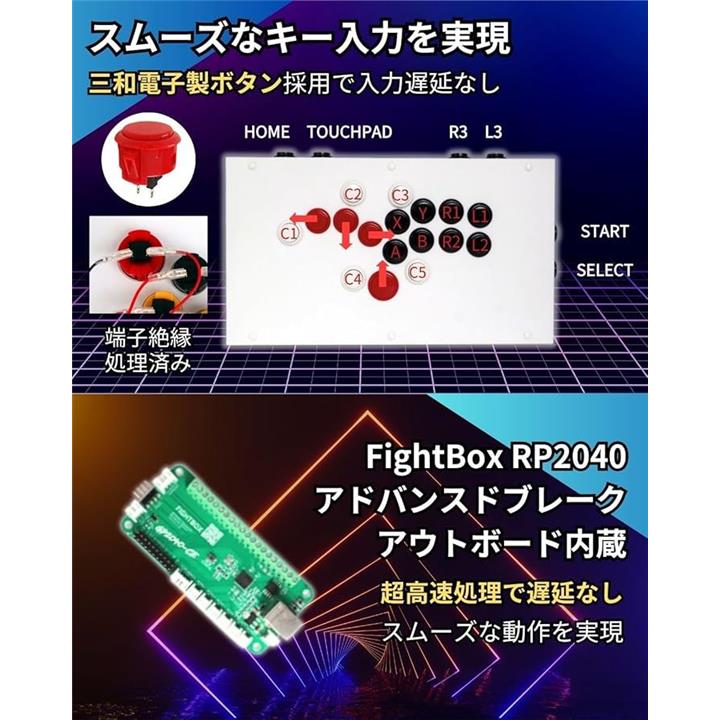 ファイトボックス F-PRO PC プレイステーション PS3 PS4 スイッチ SWITCH 対応 全ボタン レバーレス アーケード ファイティング スティック ヒットボックス 格闘ゲーム アケコン コントローラー 三和電子製ボタン SOCD対応 日本語マニュアル付き