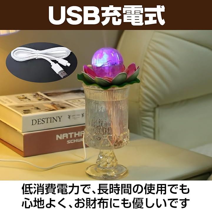 加湿器 2本セット 花型スティックタイプ 蓮の花 超音波式 卓上 コップ USB給電 ミスト 乾燥対策 保湿 持ち運び簡単