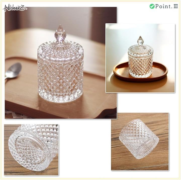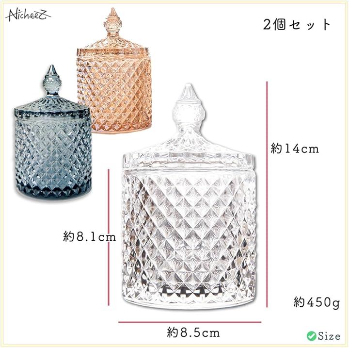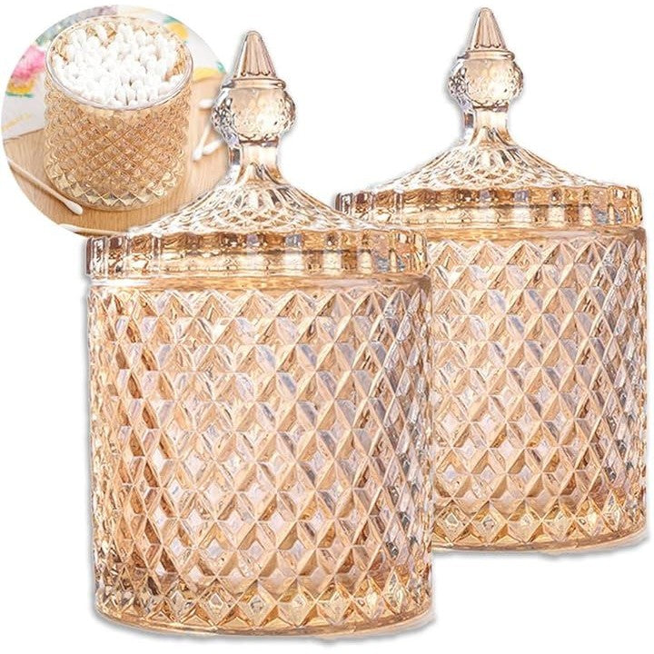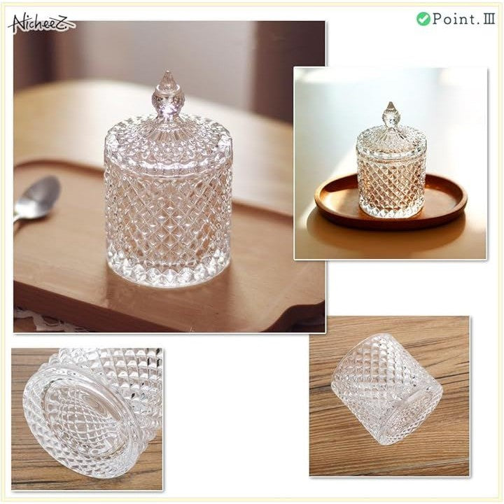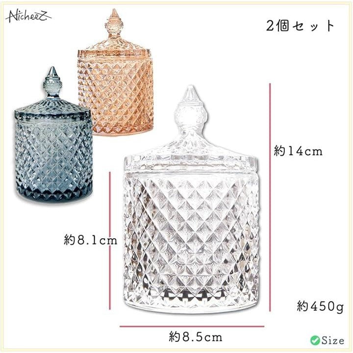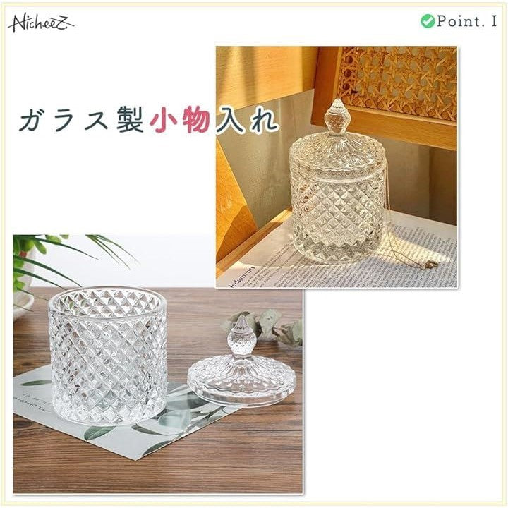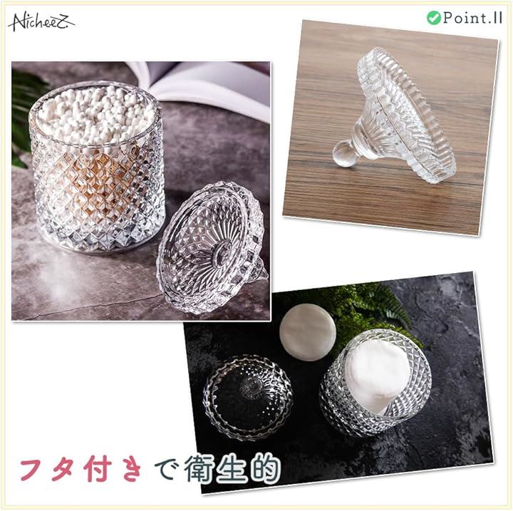 ガラス製 小物入れ コットン 綿棒 蓋付き 2個セット