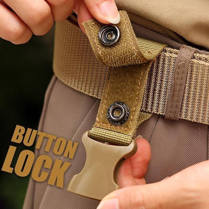 (2)テープとボタンのダブルロックでベルトなどにガッチリ固定することも可能です。