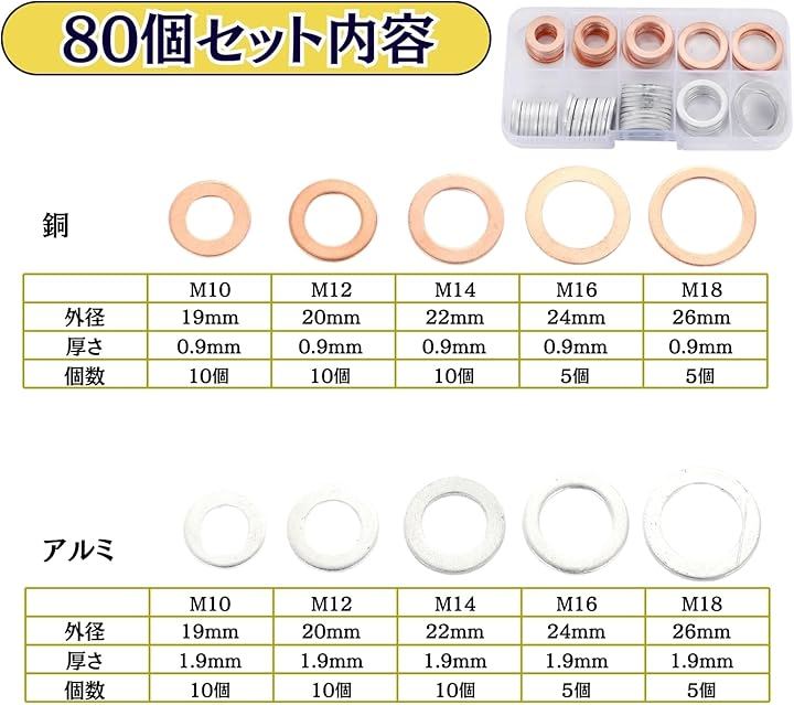 互換品アルミ 銅 ワッシャー シール ドレンパッキン 工具 DIY 汎用