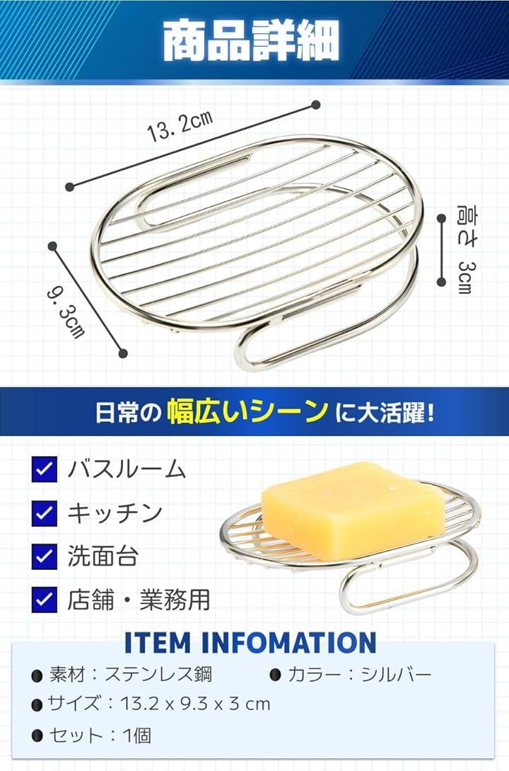 互換品 石鹸置き ステンレス ソープディッシュ 石けん ソープトレー バスルーム シンプル