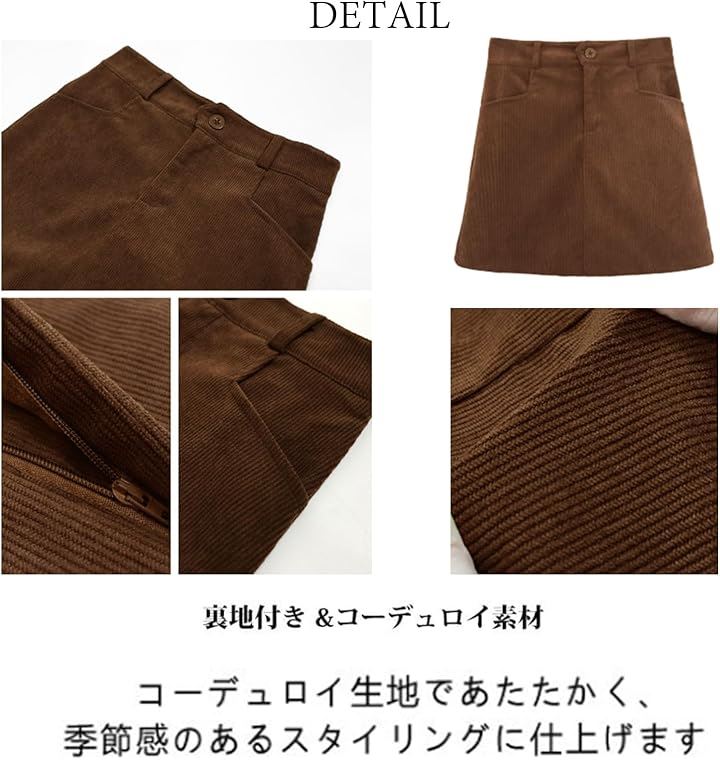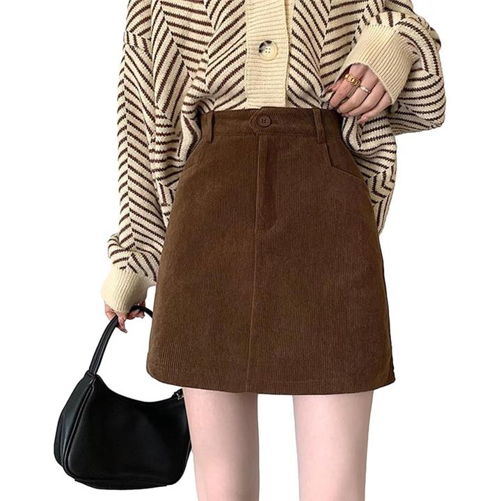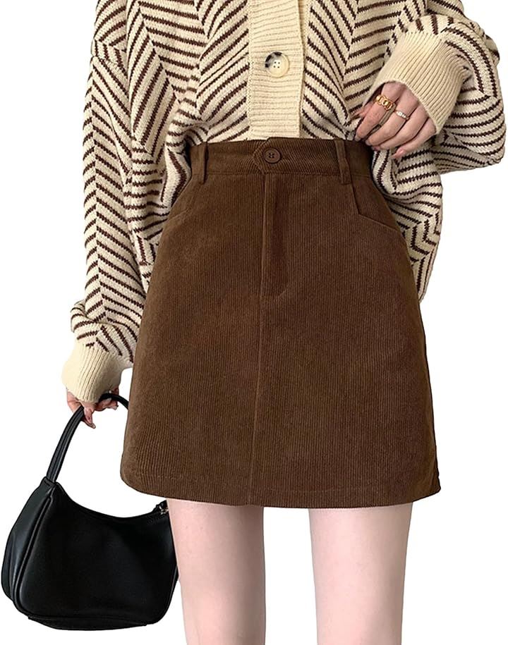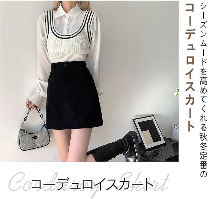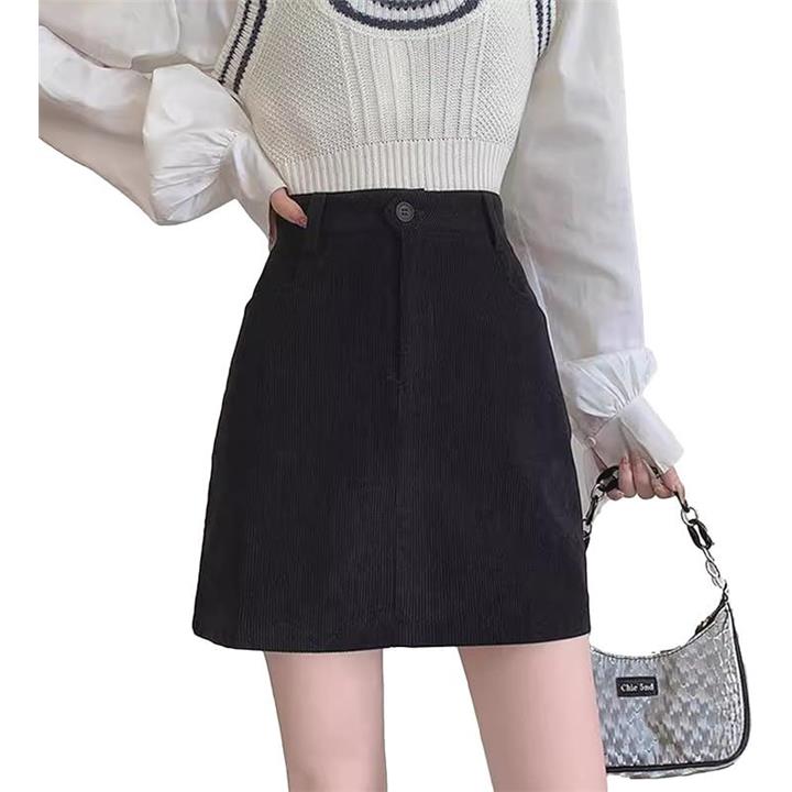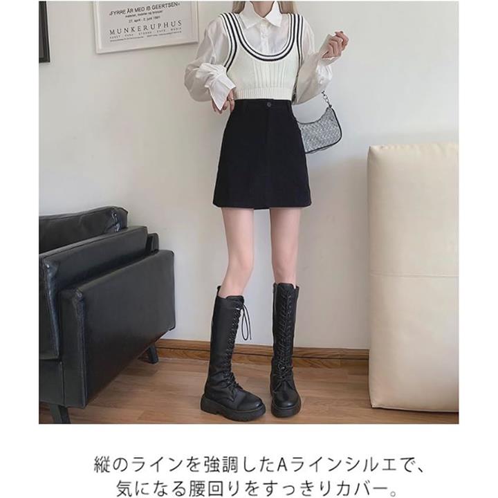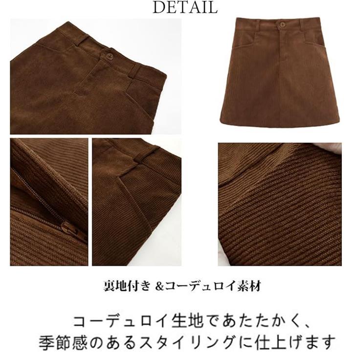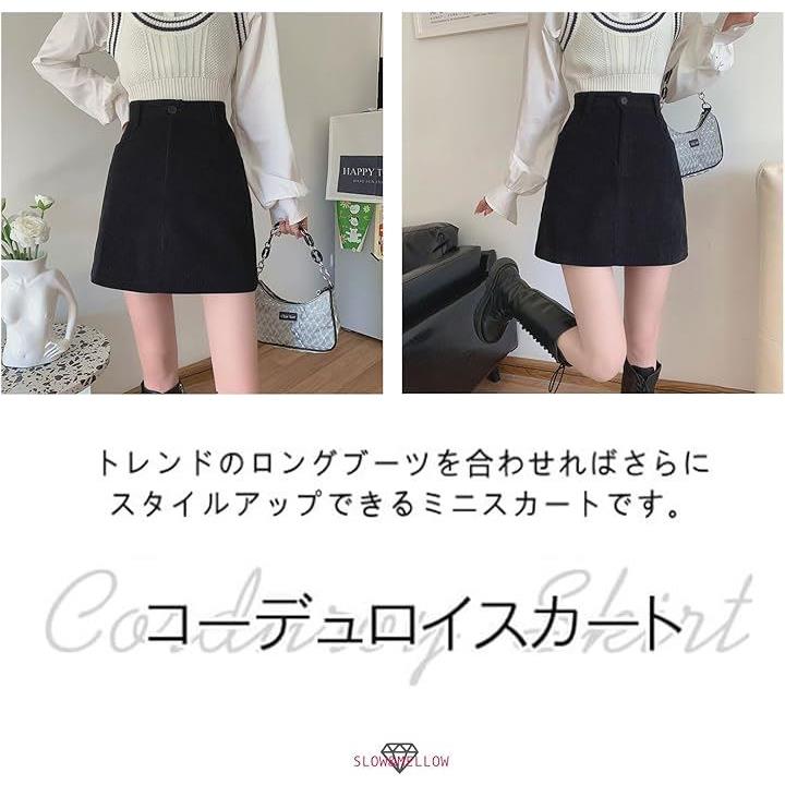ミニスカート コーデュロイ カジュアル 台形 Aライン 膝上 丈 シンプル ハイウエスト 2カラー タイト ショート 無地 ファスナー 可愛い ひざ丈 ひざ上