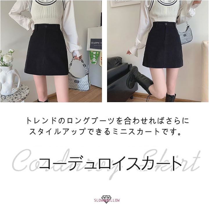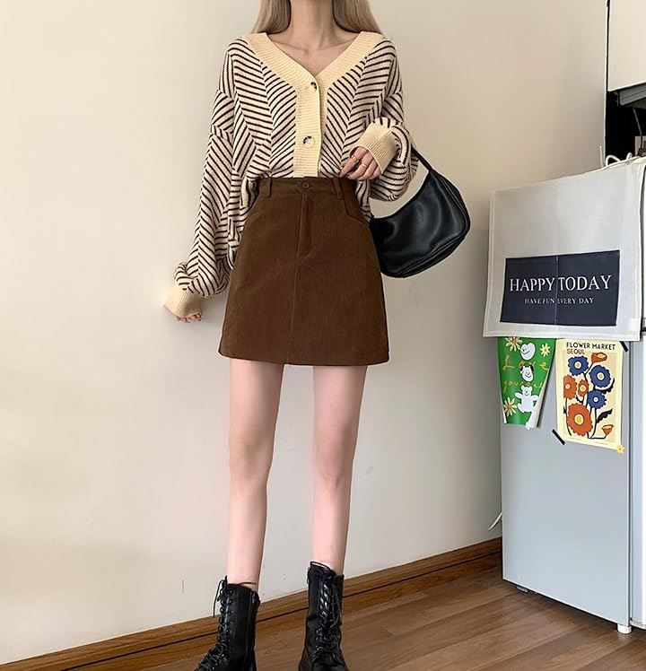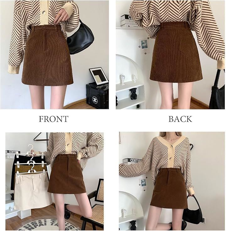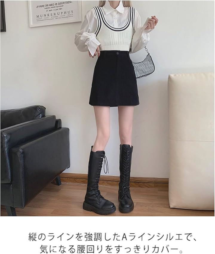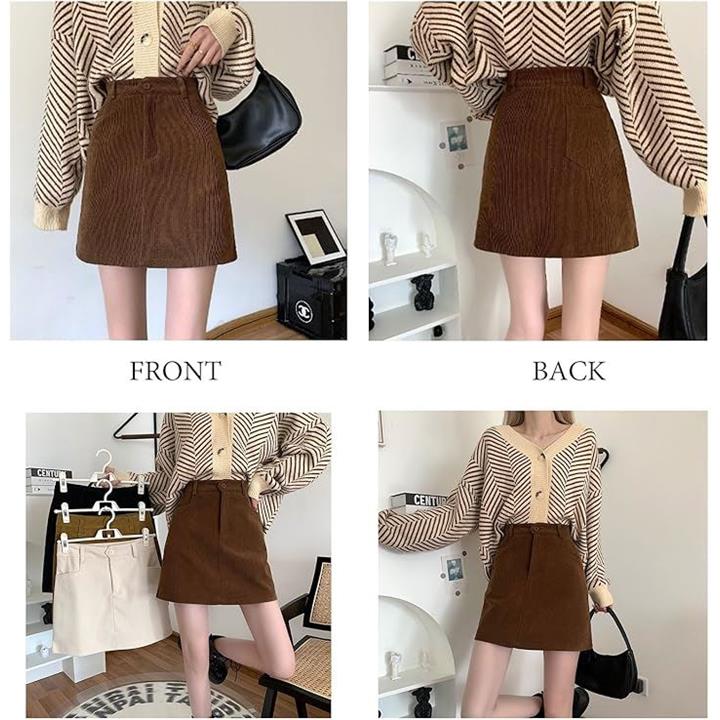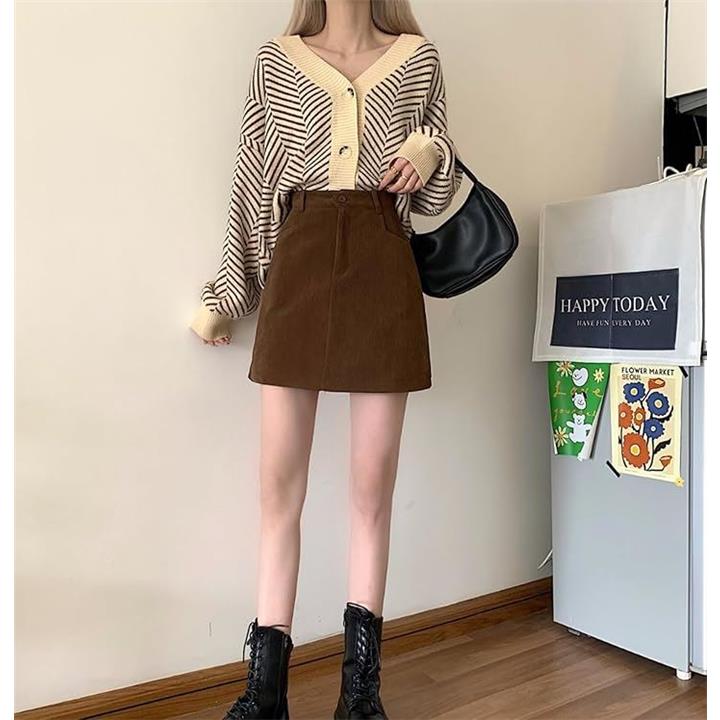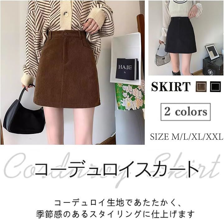 ミニスカート コーデュロイ カジュアル 台形 Aライン 膝上 丈 シンプル ハイウエスト 2カラー タイト ショート 無地 ファスナー 可愛い ひざ丈 ひざ上