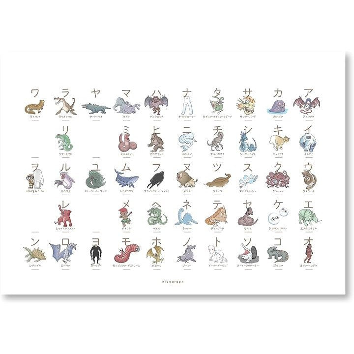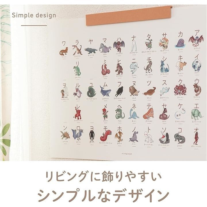 UMAカタカナ表 こだわりあいうえお 未確認生物だけのカタカナ表 白 黒 アイウエオ マグネットハンガー 知育