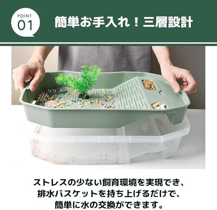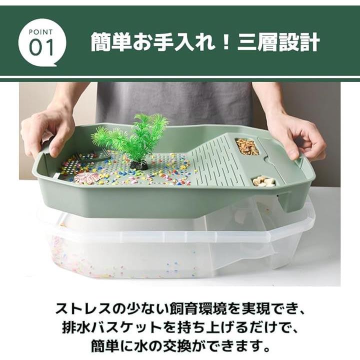 水槽 亀 カメ 飼育ケース フィルター イモリ 爬虫類 飼育セット ライト取付 脱走防止