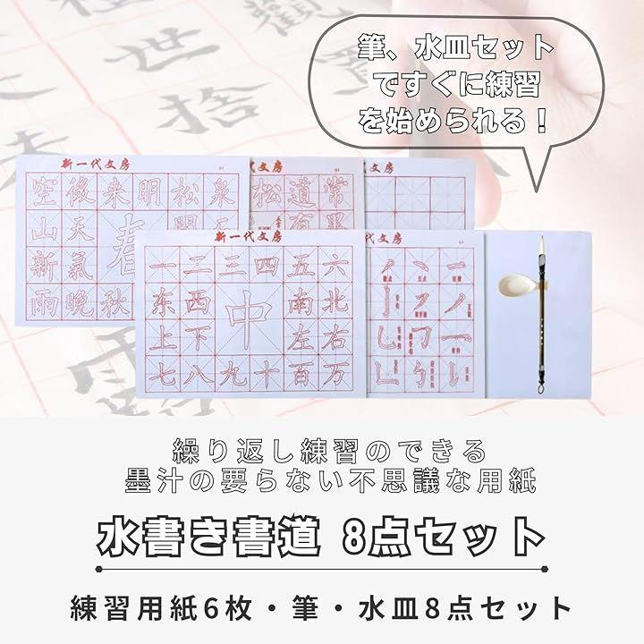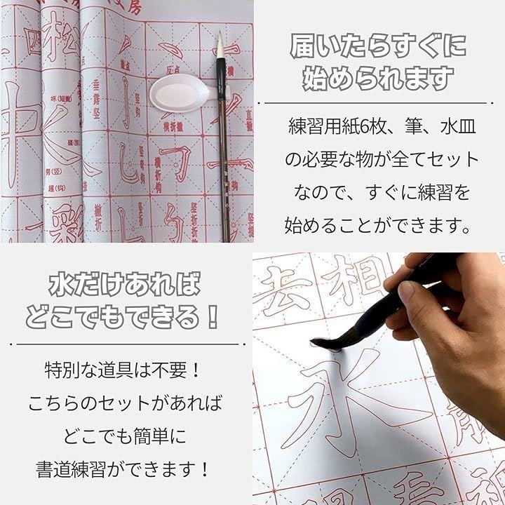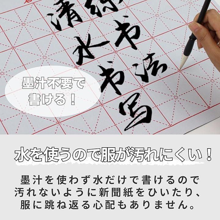 水書き書道 半紙 墨汁不要 水で書ける 書道セット 習字練習 筆と水皿付き