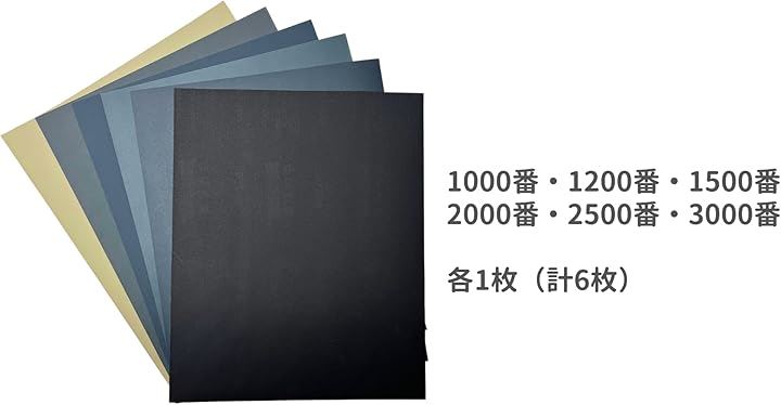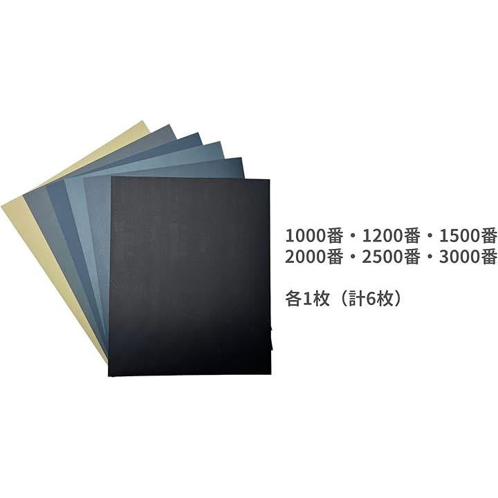 紙やすり/耐水ペーパー大判サイズ 1000番 1200番 1500番 2000番 2500番 3000番 各1枚