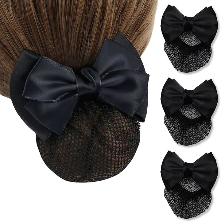 シニヨンネット リボン お団子ネット バレッタ ネット付き ヘアネット 髪ネット 髪留め ヘアアクセサリー レディース 3個セット