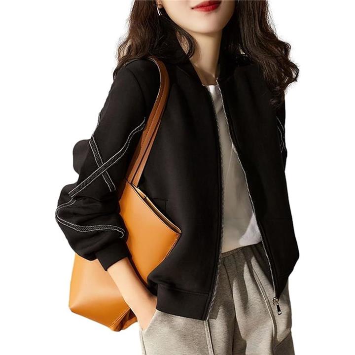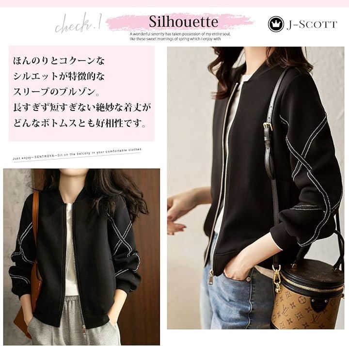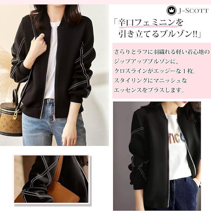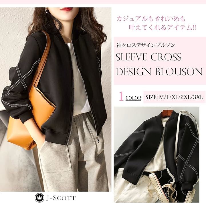 ジップアップブルゾン レディース クロスデザイン袖 ショート丈 アウター オーバーサイズ 裏地なし ハリ素材 ゆったり ジッパーブルゾン 甘辛 辛口 エレガント 十部袖 シンプル ジャケット きれいめ JS13