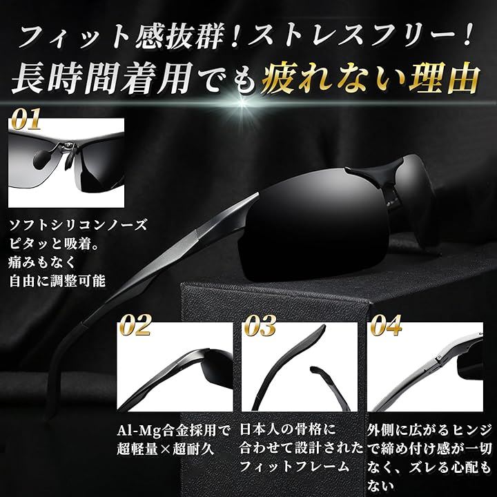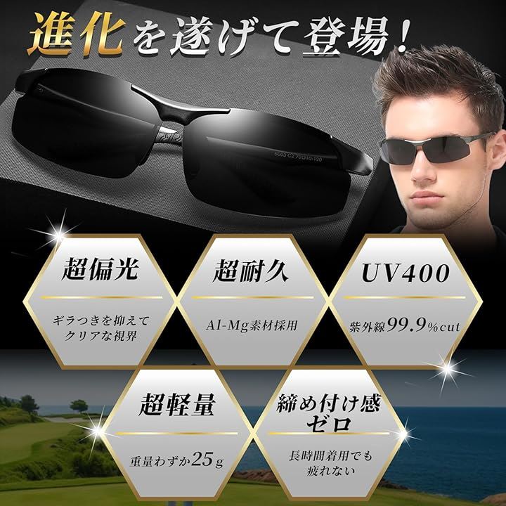 GLOFIN 偏光サングラス 超軽量 超偏光 メンズ 釣り スポーツ ゴルフ 運転 ドライブ ランニング 登山 自転車 調光 紫外線カット レジャー アウトドア