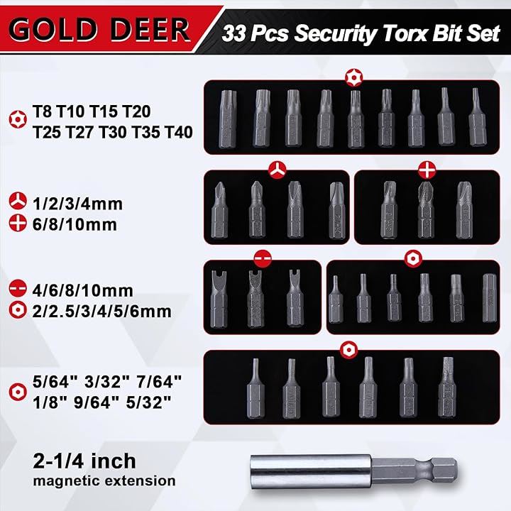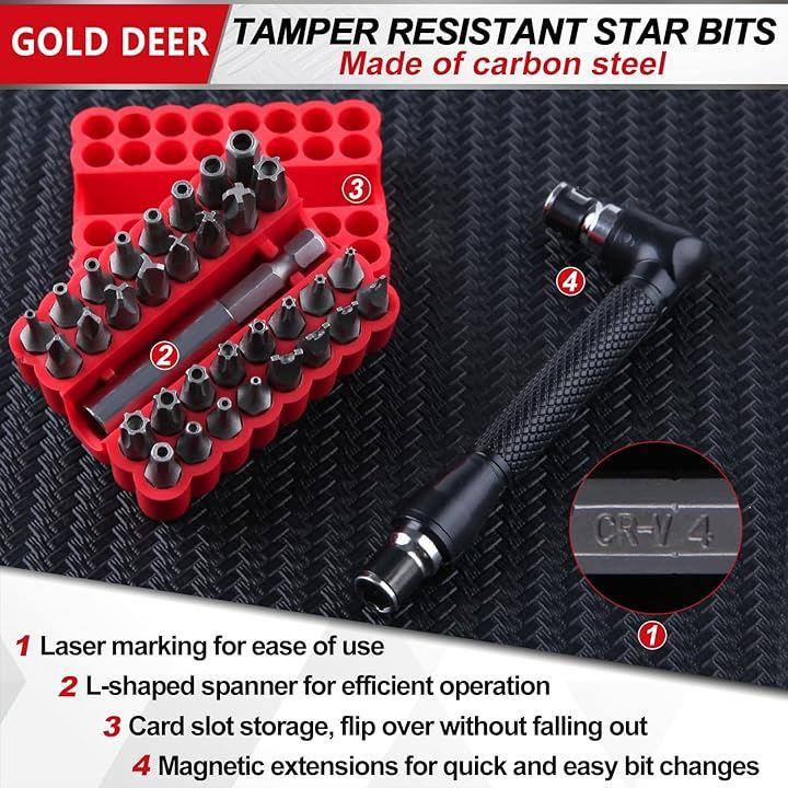 33個 セキュリティトルクスビットセット 磁気延長ビット・ホルダー Lレンチ いたずら防止スタービット 耐タンパー性スタービット セキュリティドライバーセット ハンドツール ねじ締めドリル用ドライバービット 収納ボックス付き ポータブル