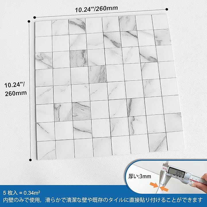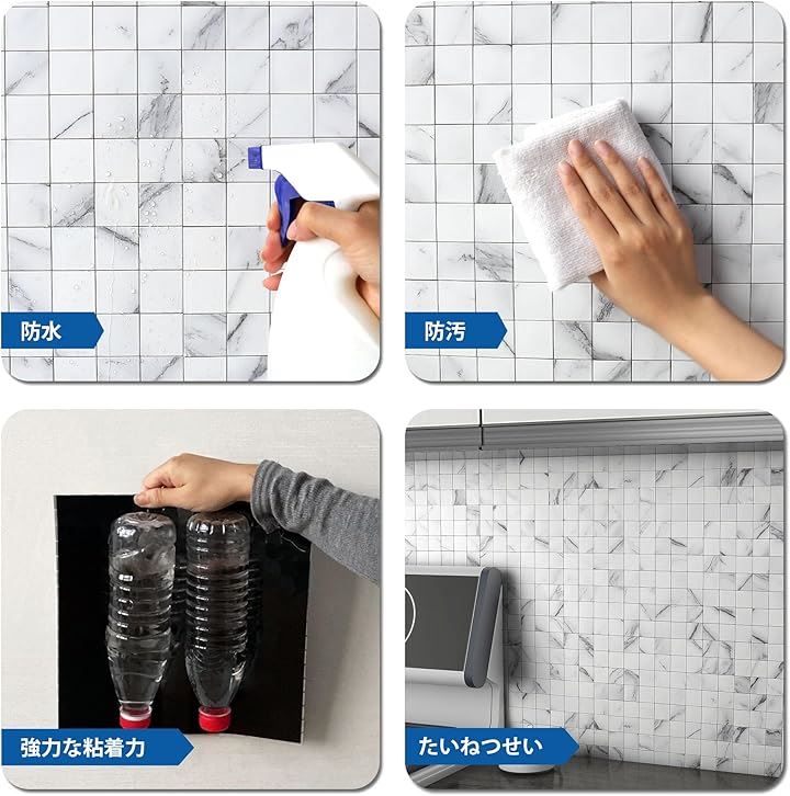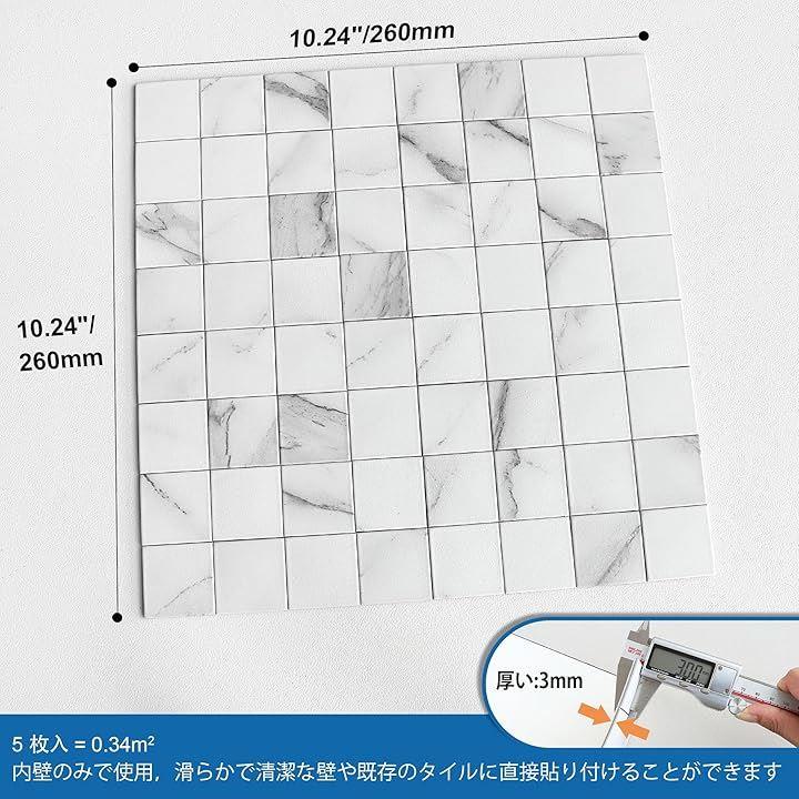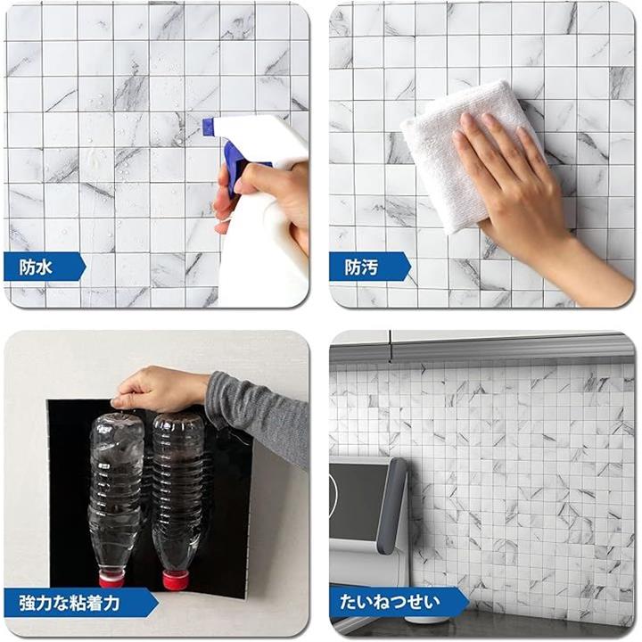 大理石調 タイルシール 防水 耐熱 キッチン 正方形 貼り付け タイルシート キッチンパネル 洗面所 トイレ 壁