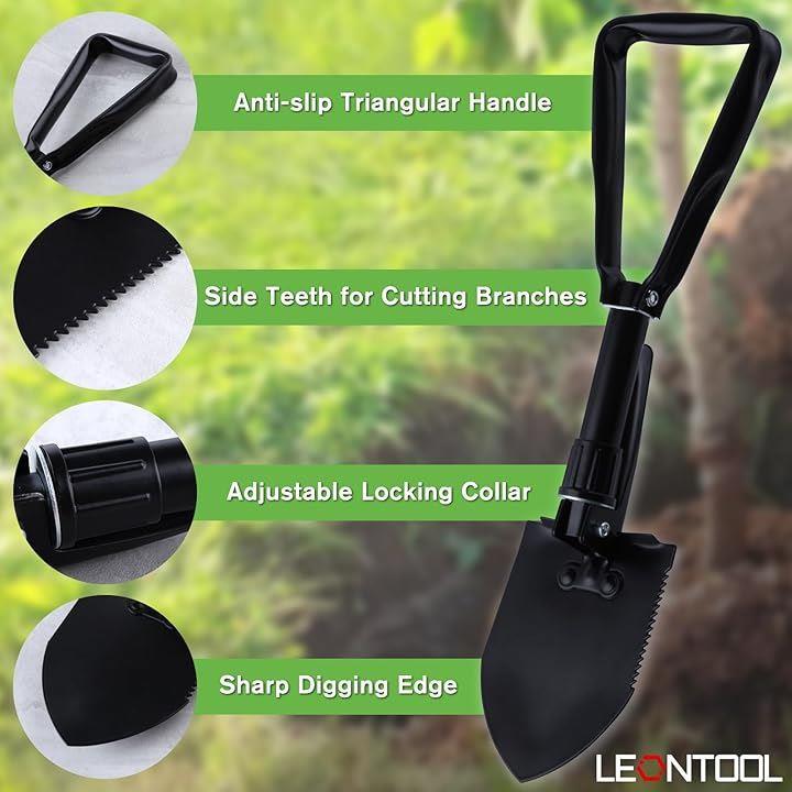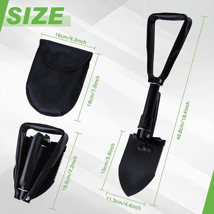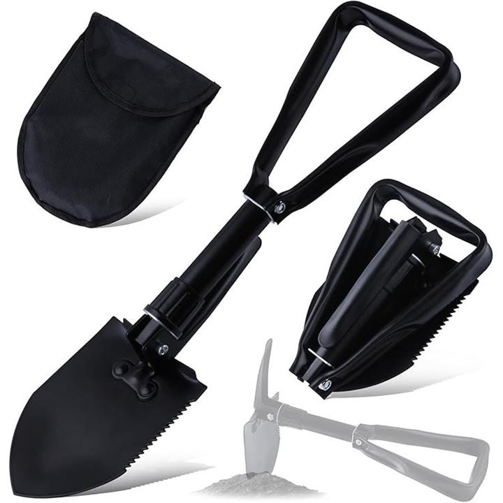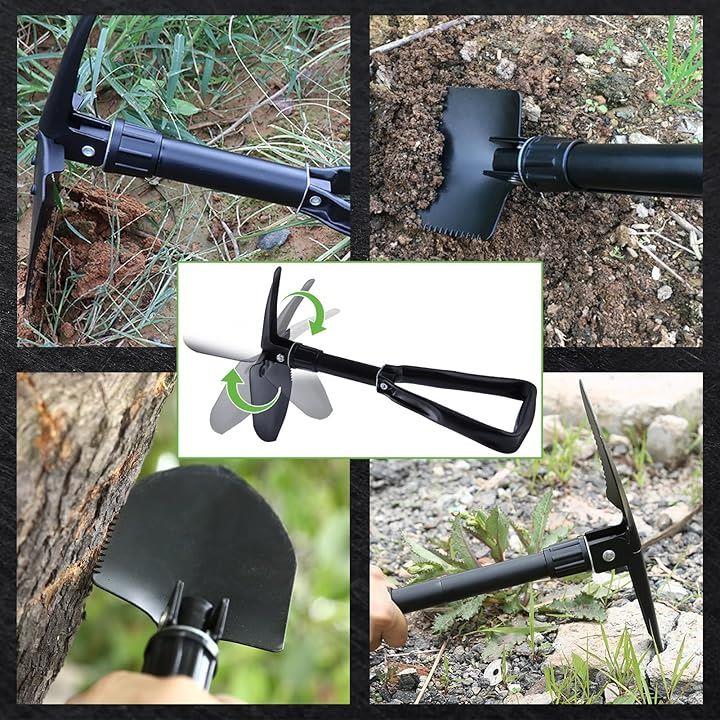 折り畳みスコップ 多機能シャベル キャンプ 折りたたみシャベル 携帯スコップ 軽量 小型 ミニ 軍用 3つ折り ショベル 車載 つるはし 鋸 くわ 3段階調整可能