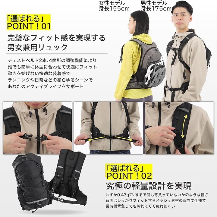 ランニング リュック ハイドレーション バッグ サイクリング トレラン ザック 自転車 軽量 揺れない トレイル 防水 多機能