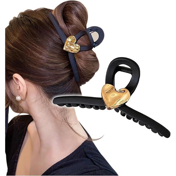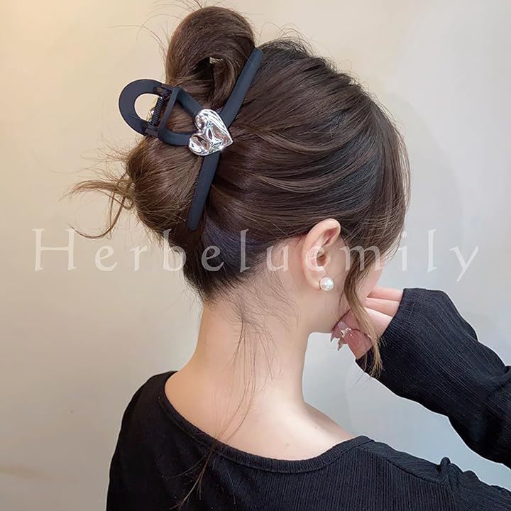 バンスクリップ ヘアピン ヘアクリップ ハート メタル ヘアアクセ 13cm
