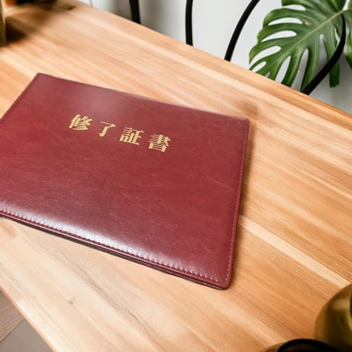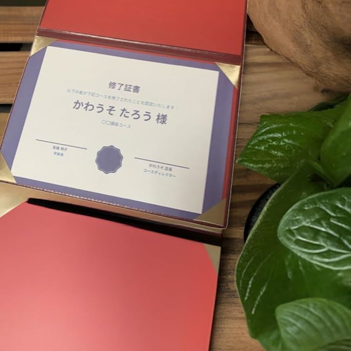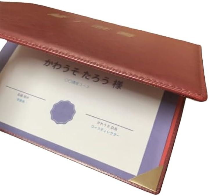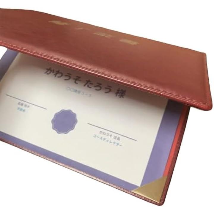かわうそdeカバー 修了証書 証書ファイル 資格 免許 賞状 a4 メニュー 二つ折 PUレザー 1枚収納