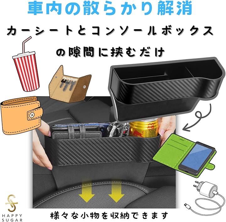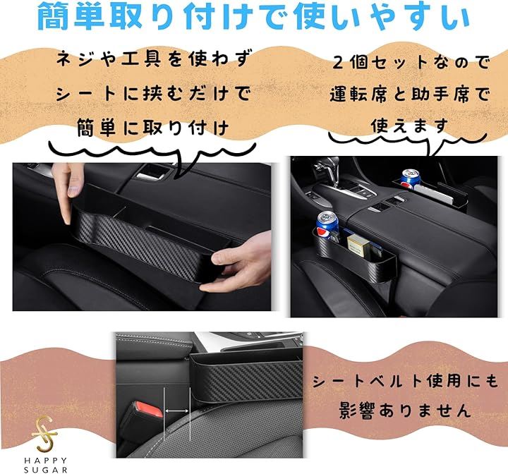 車 収納 ボックス サイドポケット 車隙間収納 シートサイドポケット ドリンクカップ ケース 助手席 テーブル 2個セット