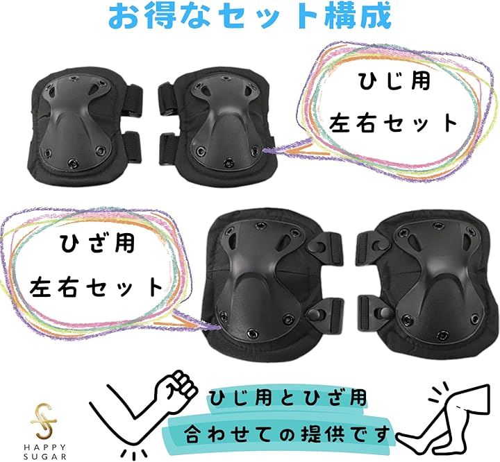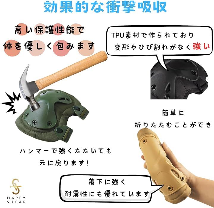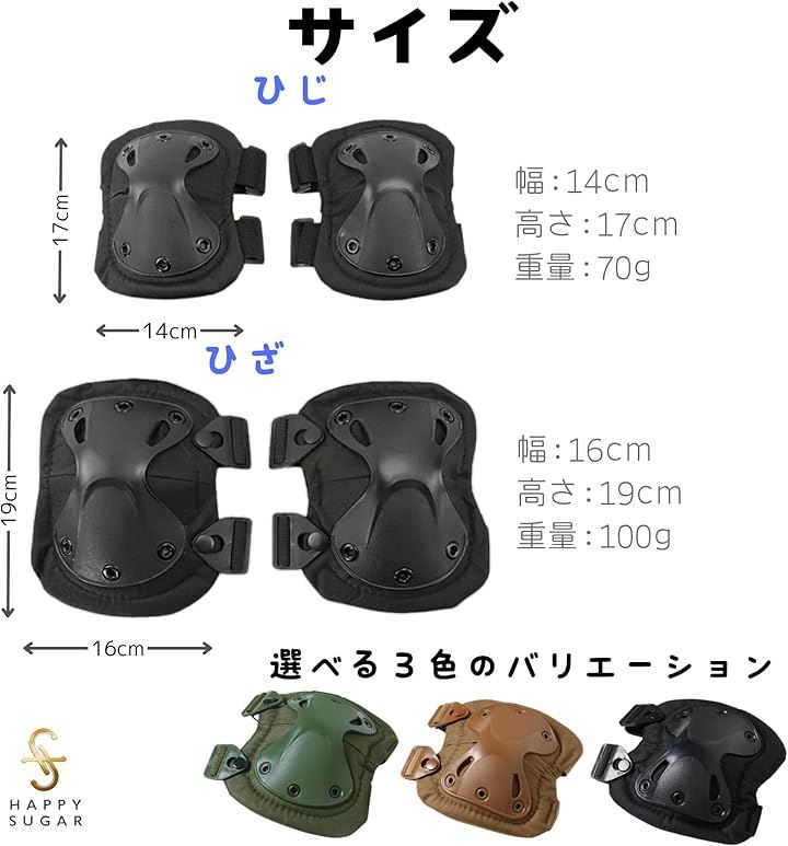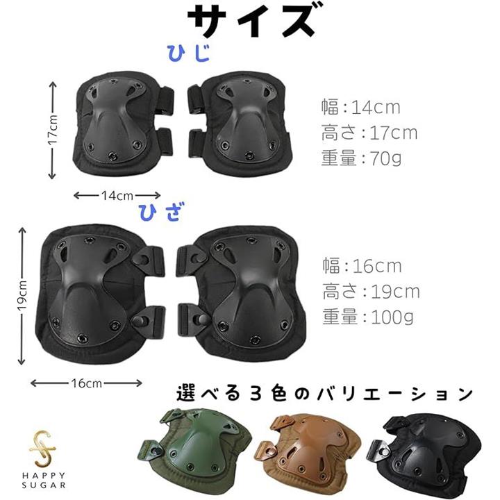 肘あて 膝あて ニーパッド サバゲー プロテクター エルボーパッド 装備 スポーツ アウトドア 膝用1セット 肘用1セット