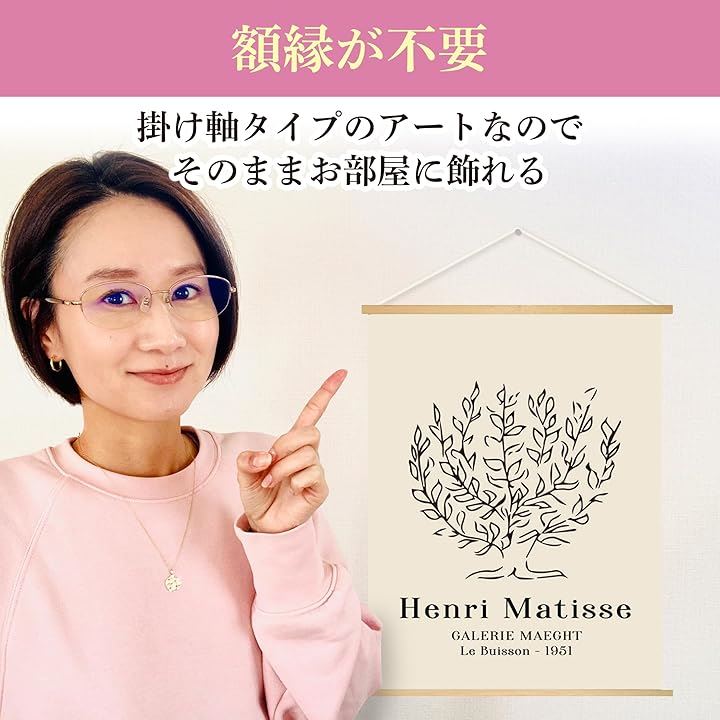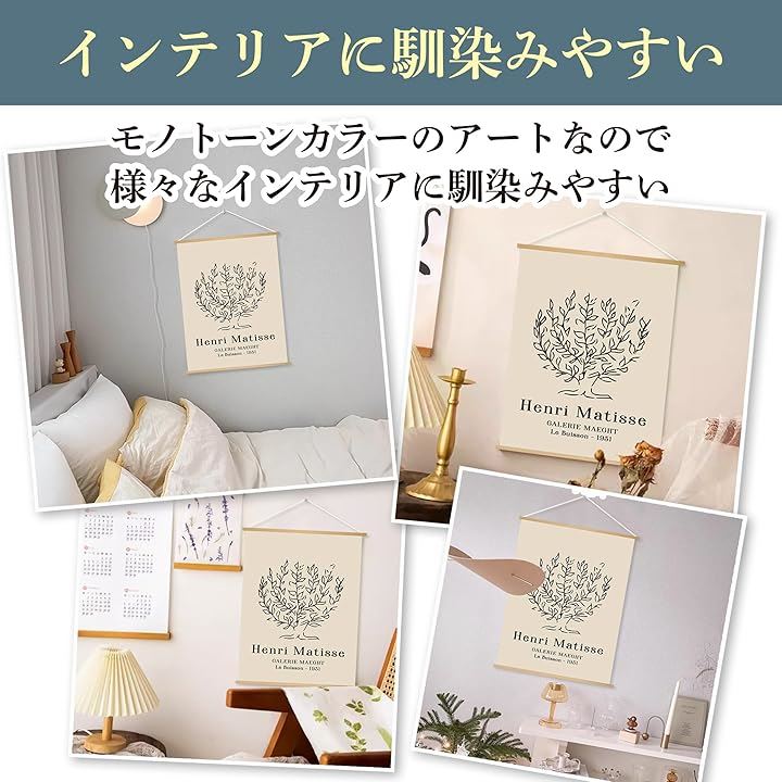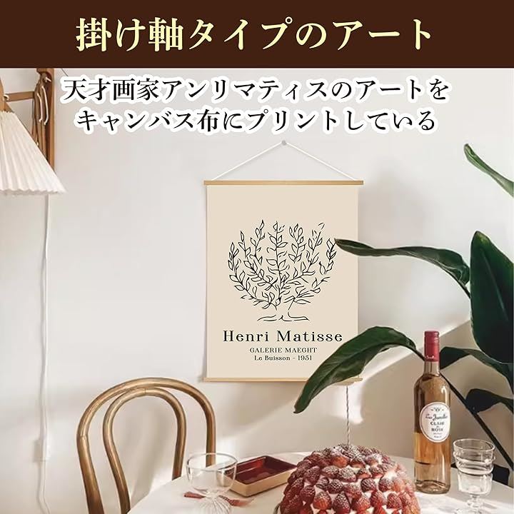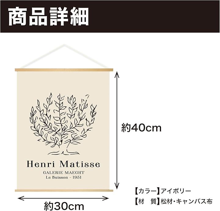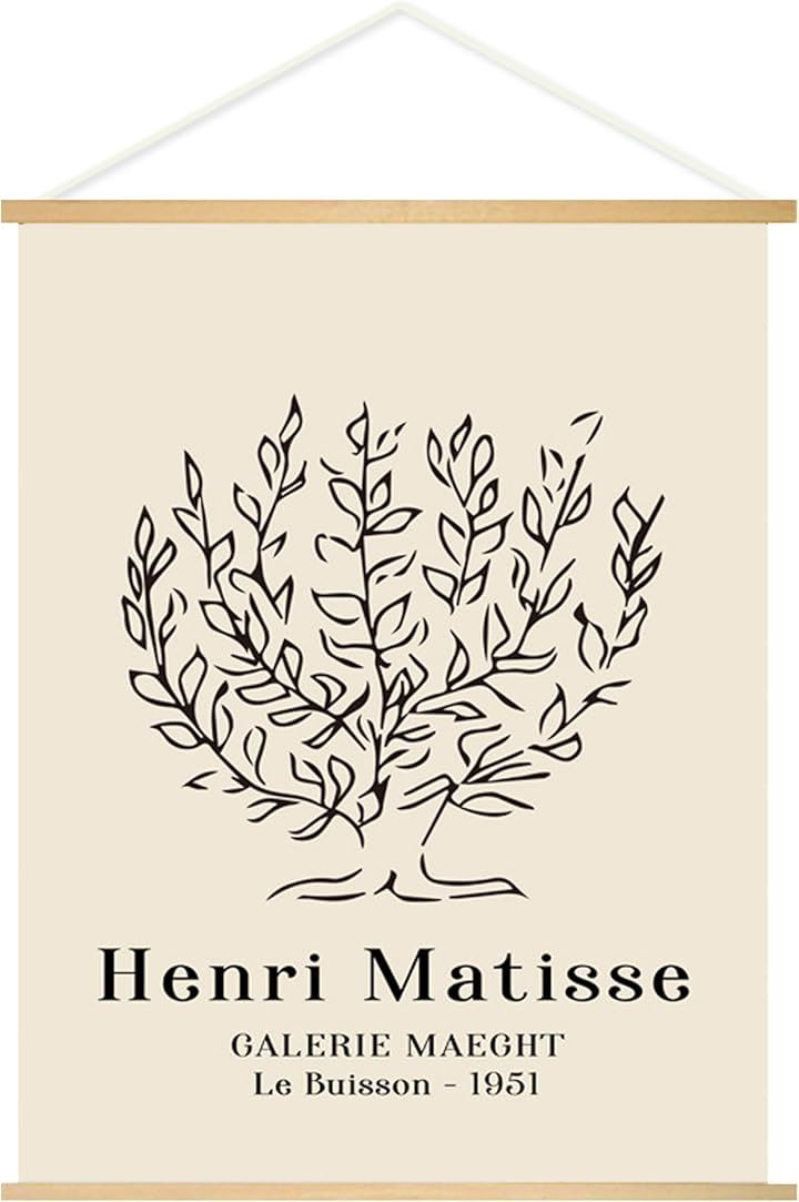 EdisonBrain アンリ マティス キャンバス 掛け軸 30x40cm 絵画 ポスター 低木 ドローイング ライン アート 壁掛け モノクロ 線画 インテリア