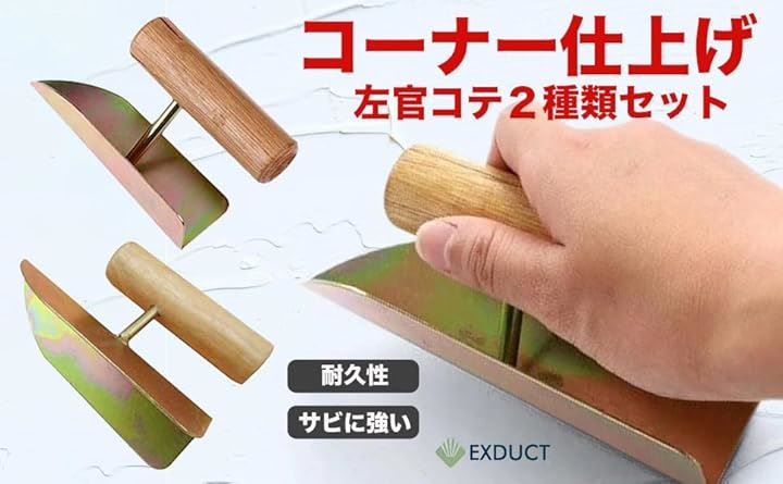 コテ 左官 壁塗り 仕上げ コーナー 入隅 出隅 珪藻土 セメント コンクリート モルタル 漆喰 溝回り 建築 大工工具 左官コテ
