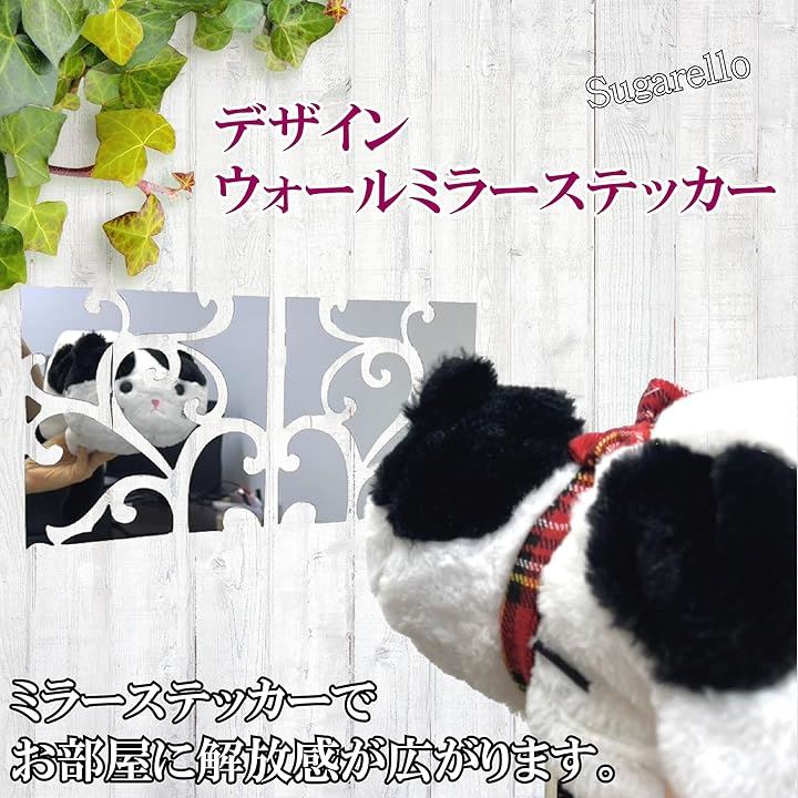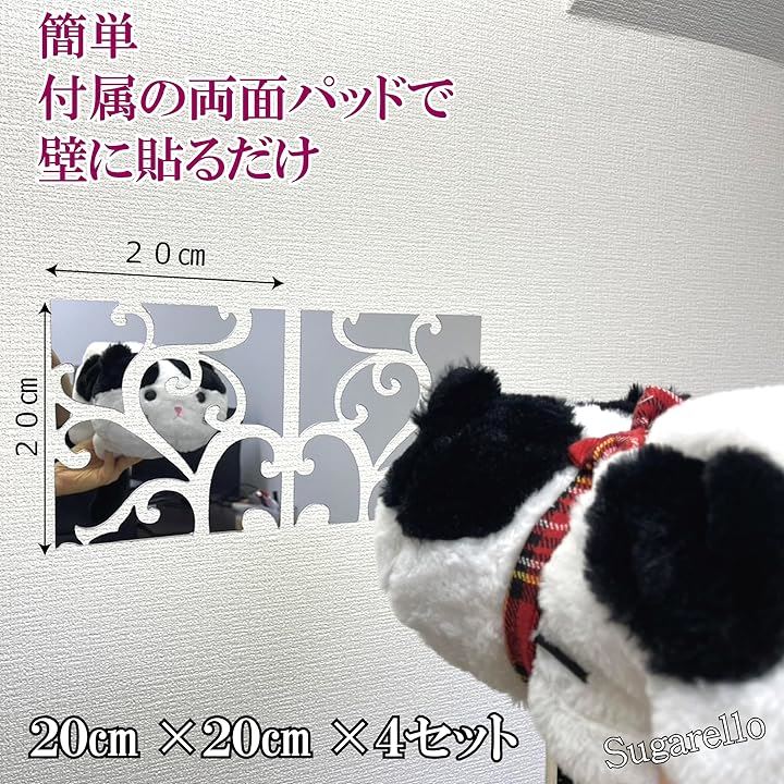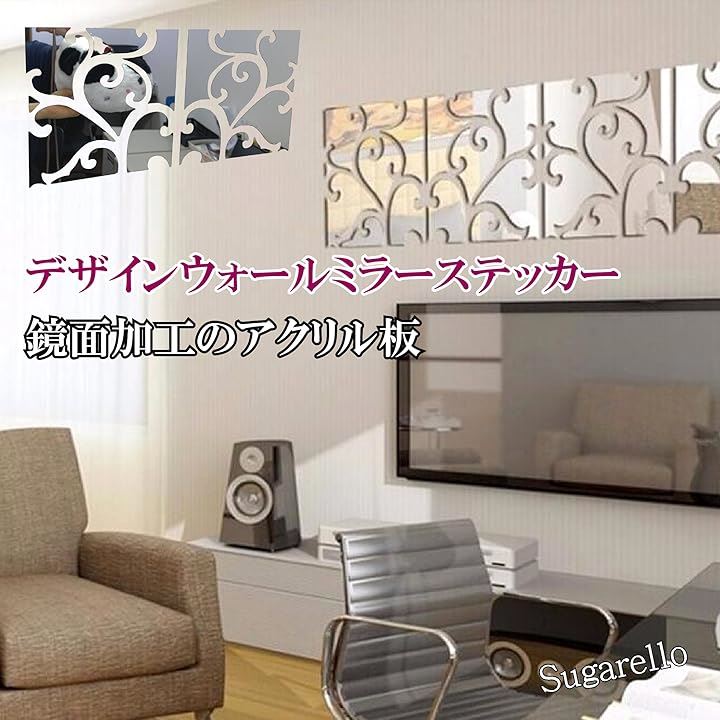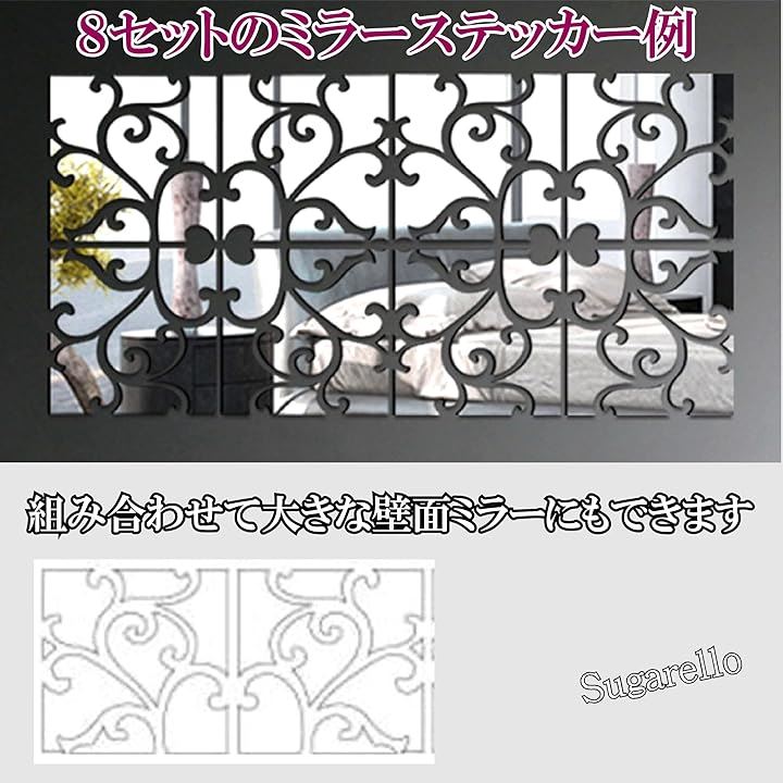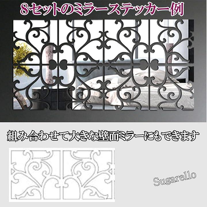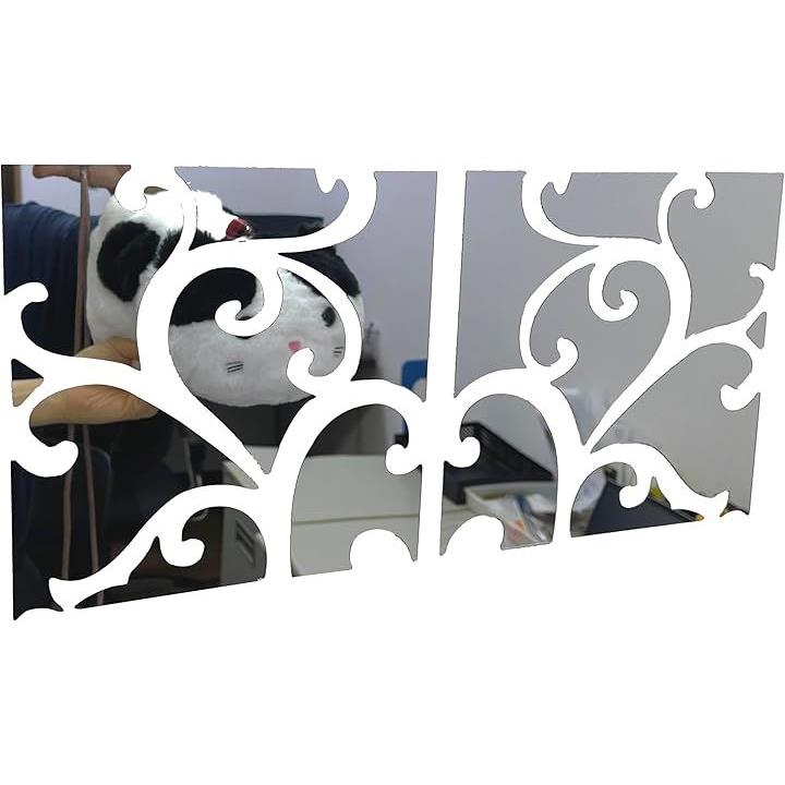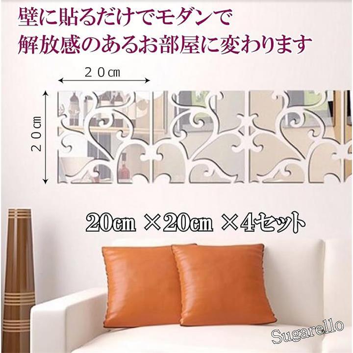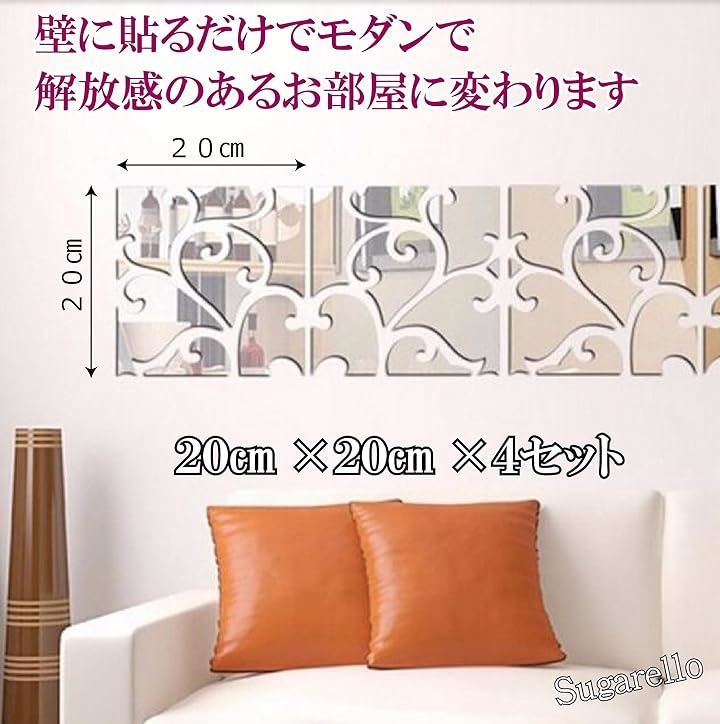 ミラーウォールステッカー 鏡 壁紙 モダン インテリア 両面テープ リーフミラー 3D ポリカ モダンアート 壁画 シルバー 20cmx20cmx8枚