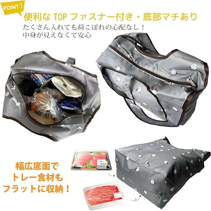 [Noah État de pleine satisfaction] エコバッグ 保冷 保温 折り畳み ファスナー付き 買い物バッグ コンパクト 大容量 肩掛け マチあり マイバッグ |