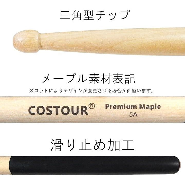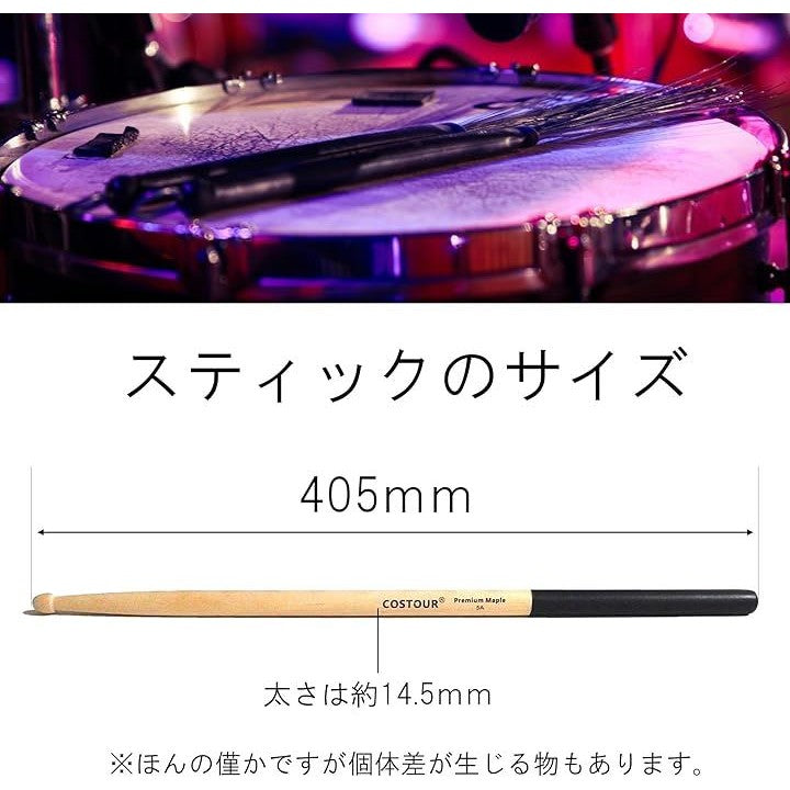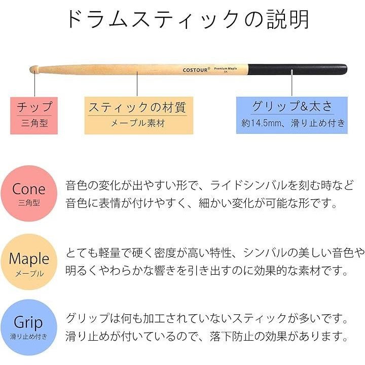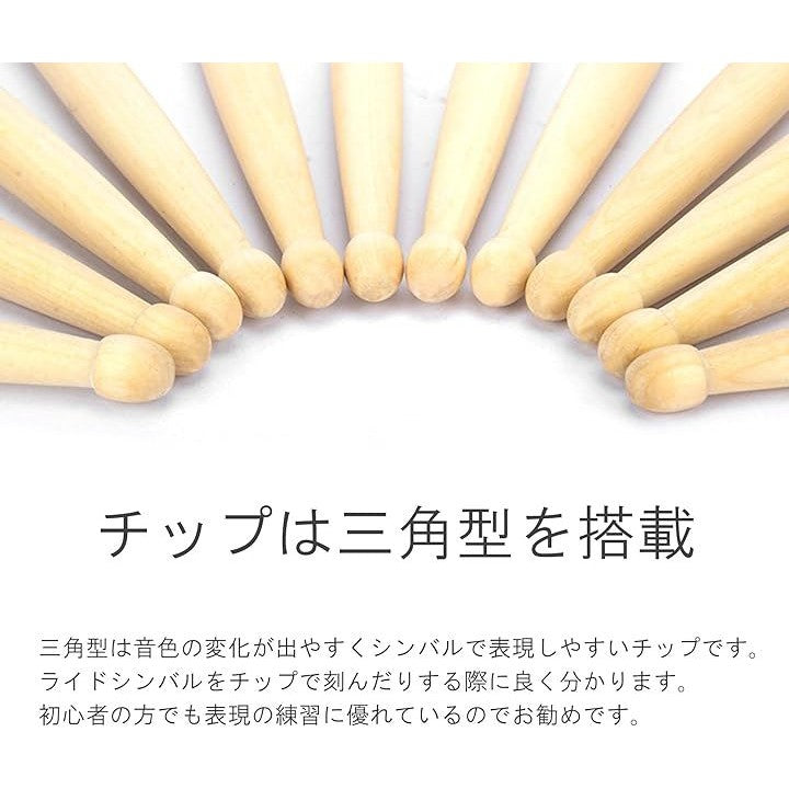 ドラムスティック セット 初心者 練習 滑り止め 付き 軽量 メープル