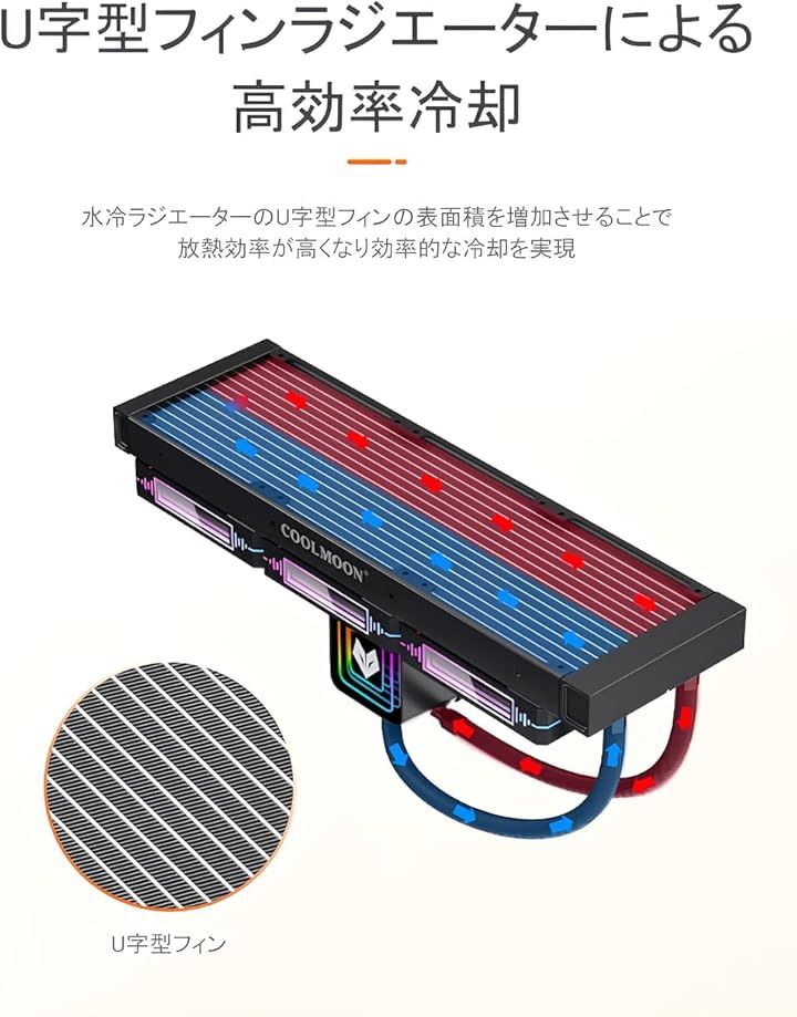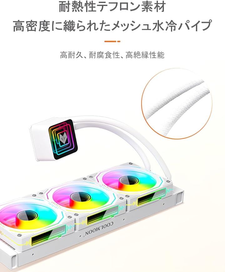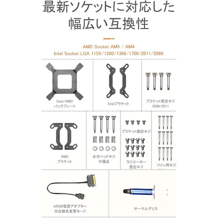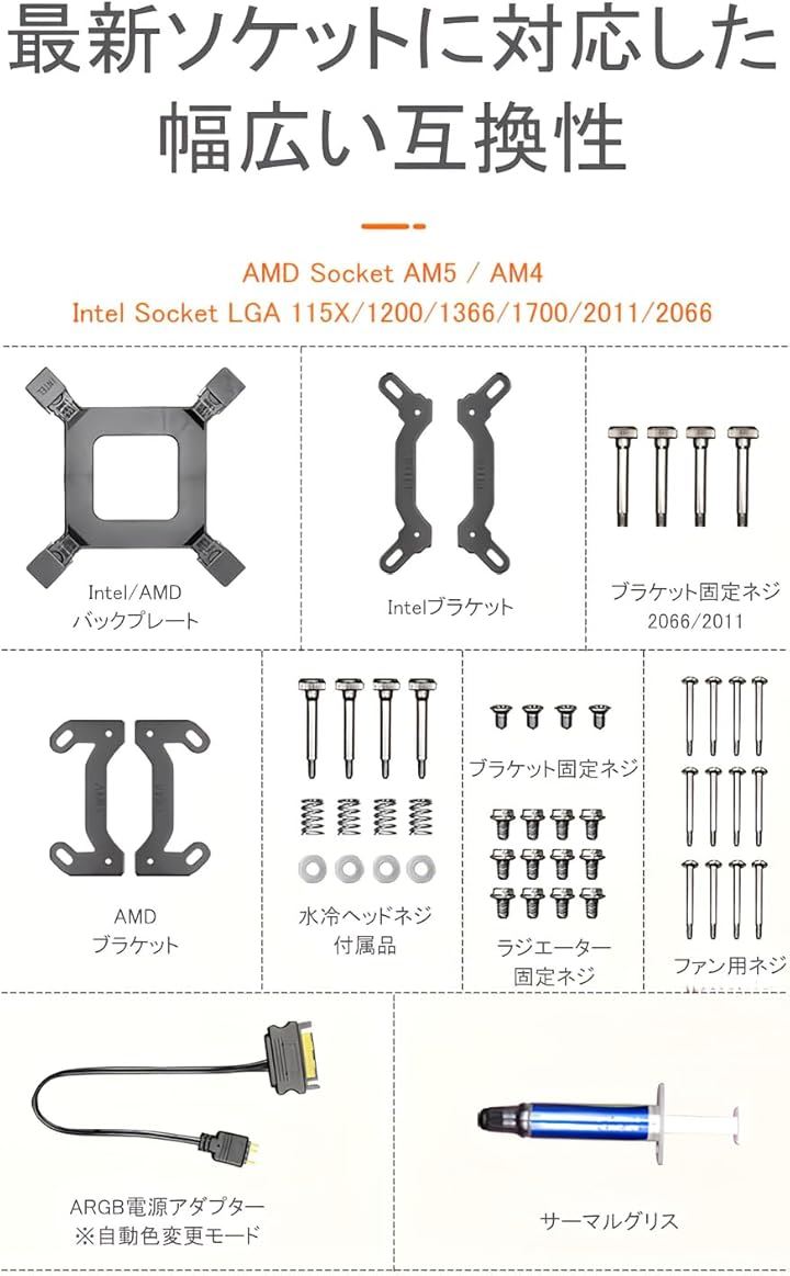 互換品 AOSOR 簡易水冷クーラー インフィニティ―ミラー CPUクーラー LED ARGB 5v 3pin LGA1700/1200/115X AMD:AM5/AM4ソケットに対応 4pin PWM ファン制御