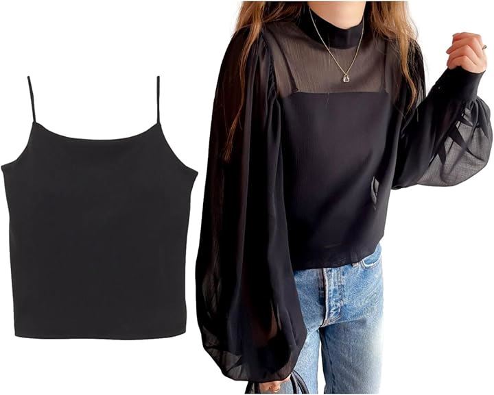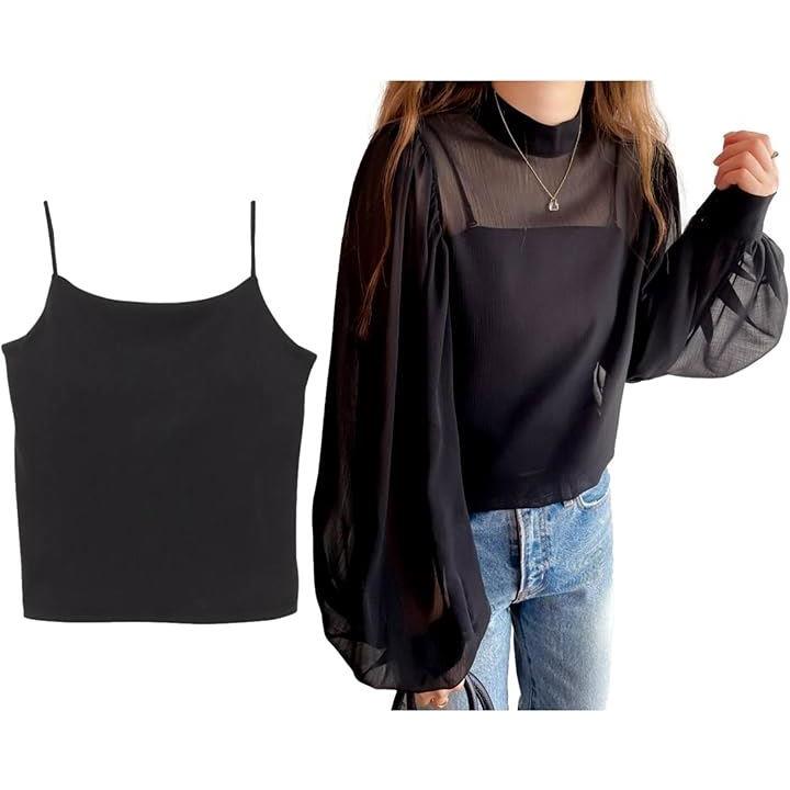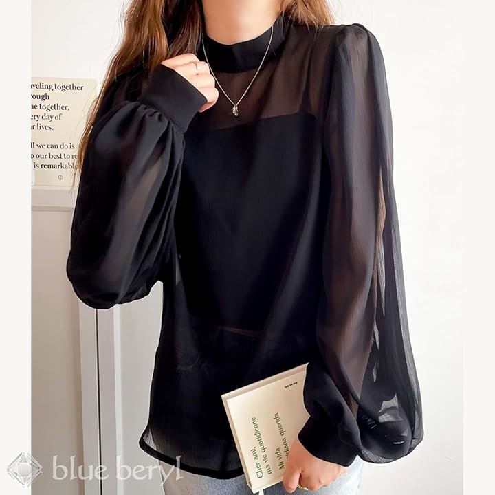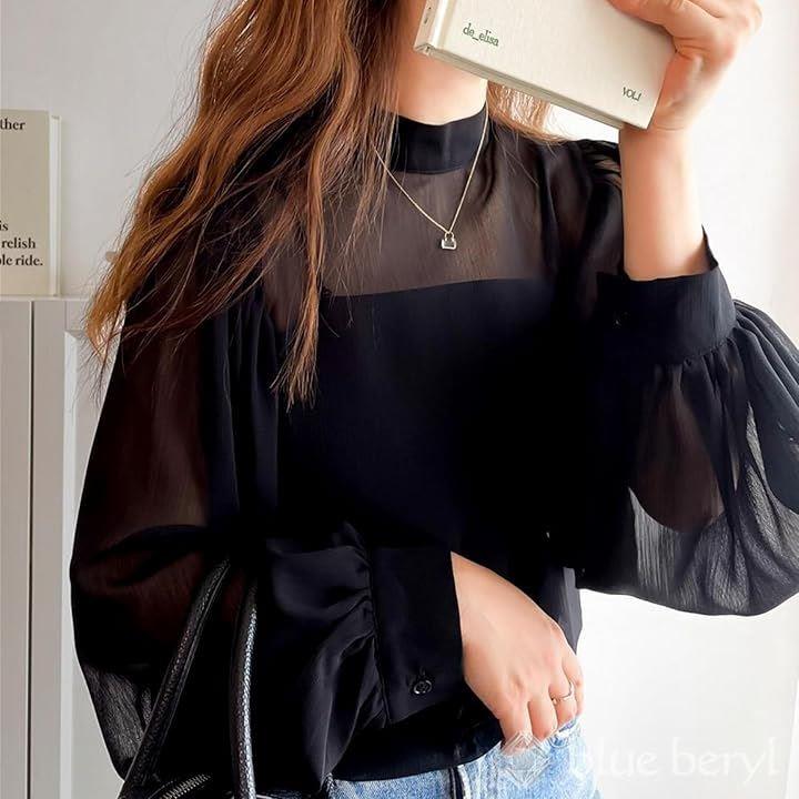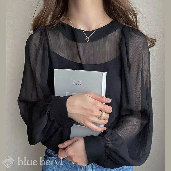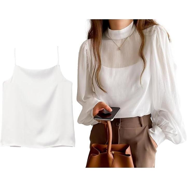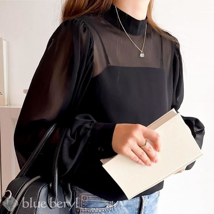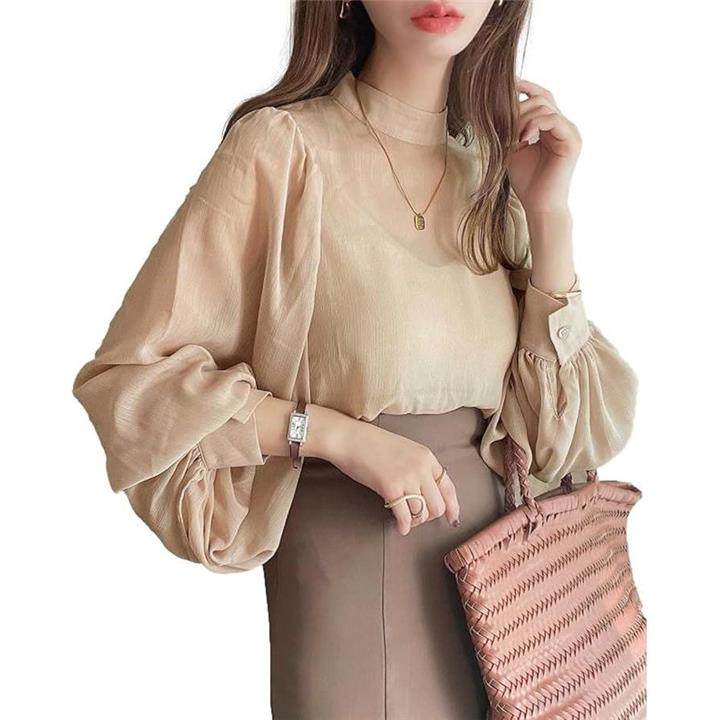 ブラウス+キャミセット レディース シャツ インナーキャミ ボリュームスリーブ モックネック シアー シボ感 楊柳 レディースライク しっかり見え エレガンス 体型カバー 長袖 大人シルエット フェミニン 高見え シフォンブラウス BB048 |
