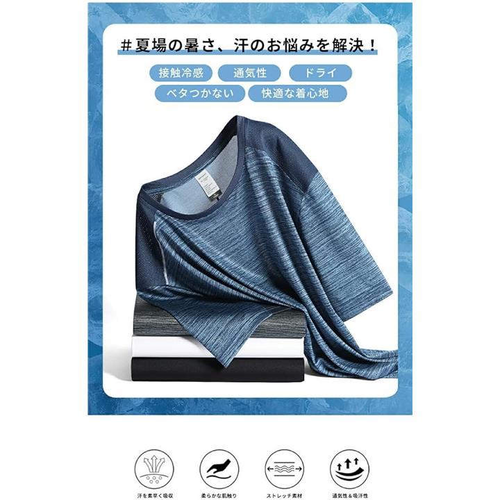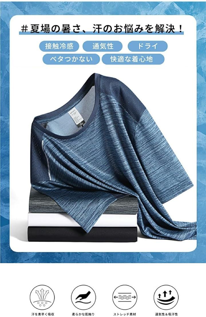 Tシャツ メンズ 接触冷感 半袖 丸首 春夏 クール 通気性 吸汗速乾 無地 ゆったり 大きいサイズ トレーニング スポーツ アウトドア