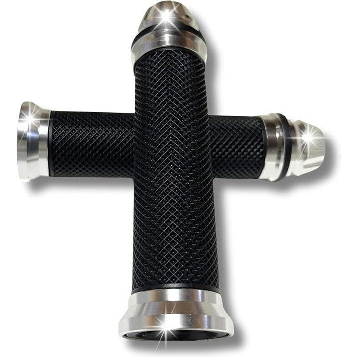 プレミアムアルミ&ラバー ハンドルバーエンド φ22.2mm 汎用 バイクグリップ 左右セット