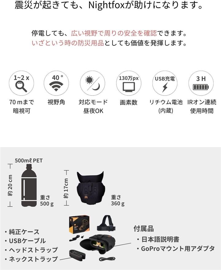 Swift 暗視ゴーグル ヘッドマウント 暗視鏡 広視野角 1倍の倍率 近接戦闘用タクティカルゴーグル USB充電式 大人用デジタル 赤外線暗視 Night Vision Goggles