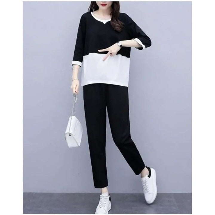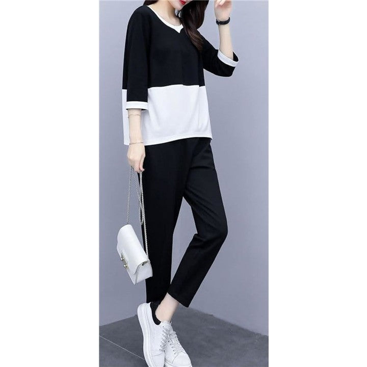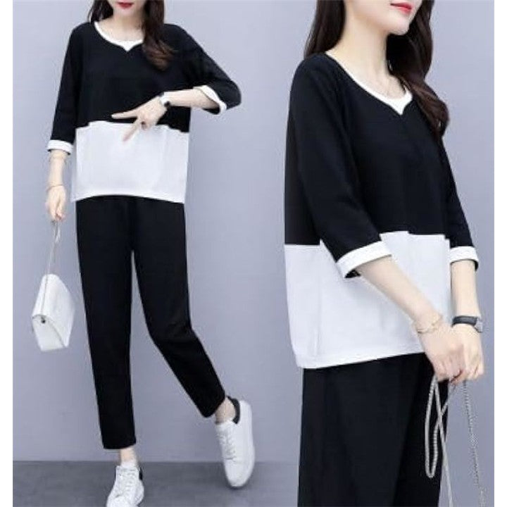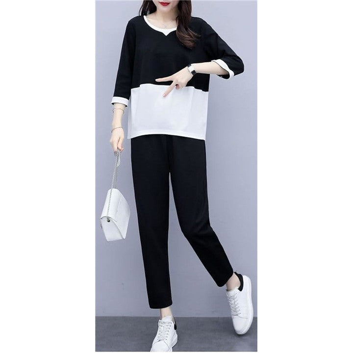 [エンプティオ] バイカラー 上下セット 半袖 レディース 上下 セット セットアップ スポーツウェア ヨガウェア ルームウェア パジャマ 部屋着 スポーツ 韓国風 上下2点セット |