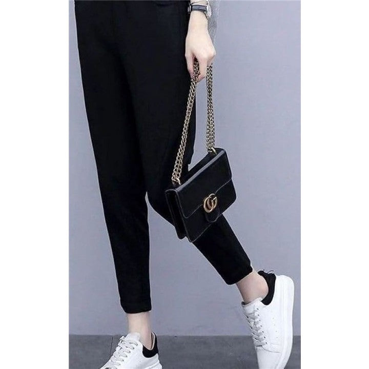 ガーリーで上品さも兼ね備えたスッキリした生地のブラックストレートパンツ。